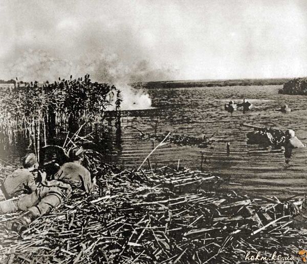 Однако противник быстро пришел в себя, и в наступление на немногочисленное воинство Маргелова направились значительные силы. По реке тут же была поставлена мощная огневая завеса, а в воздухе с первым светом барражировали самолеты с крестами, бомбившие берег и обстреливавшие все, что движется.
