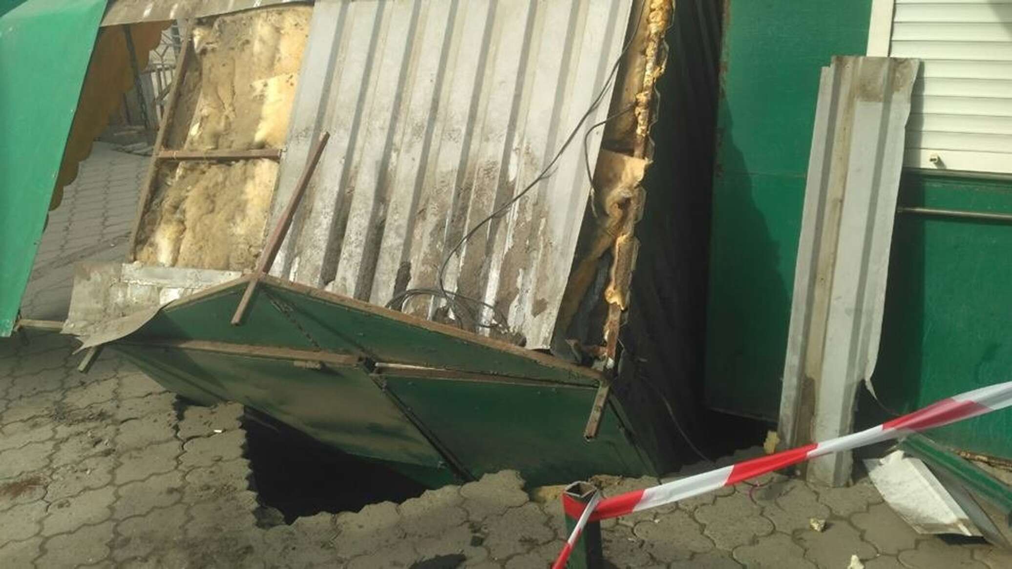В Сумах киоск ушел под землю из-за прорыва коллектора