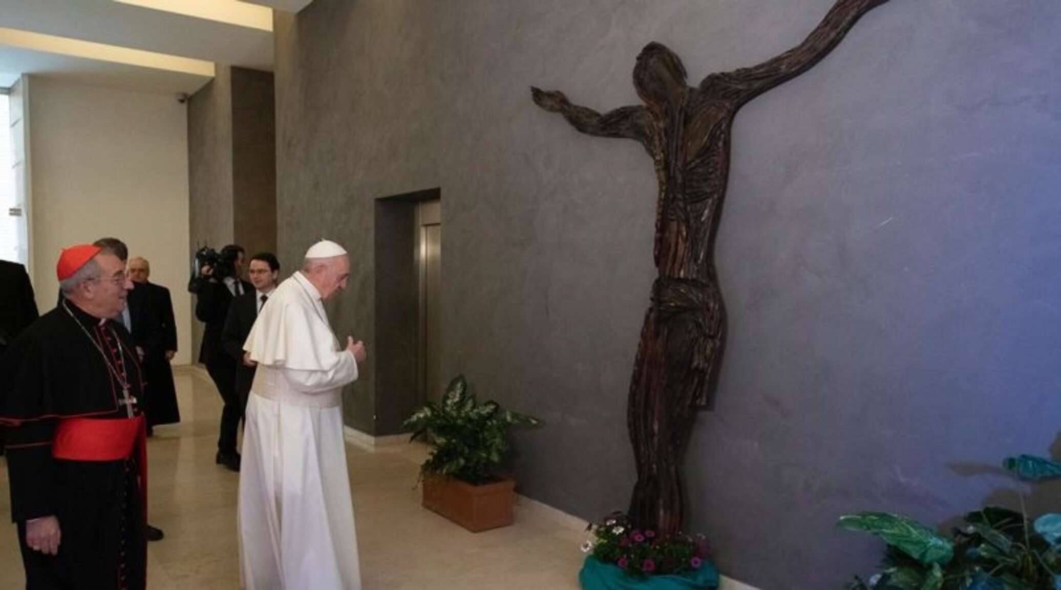 Папа Франциск освятил распятие, которое теперь по его желанию будет украшать холл университета.
