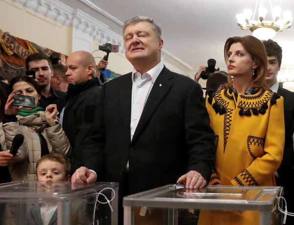 21 апреля. Киев. Без пяти минут бывший президент Украины с женой и внуком на одном из избирательных участков.