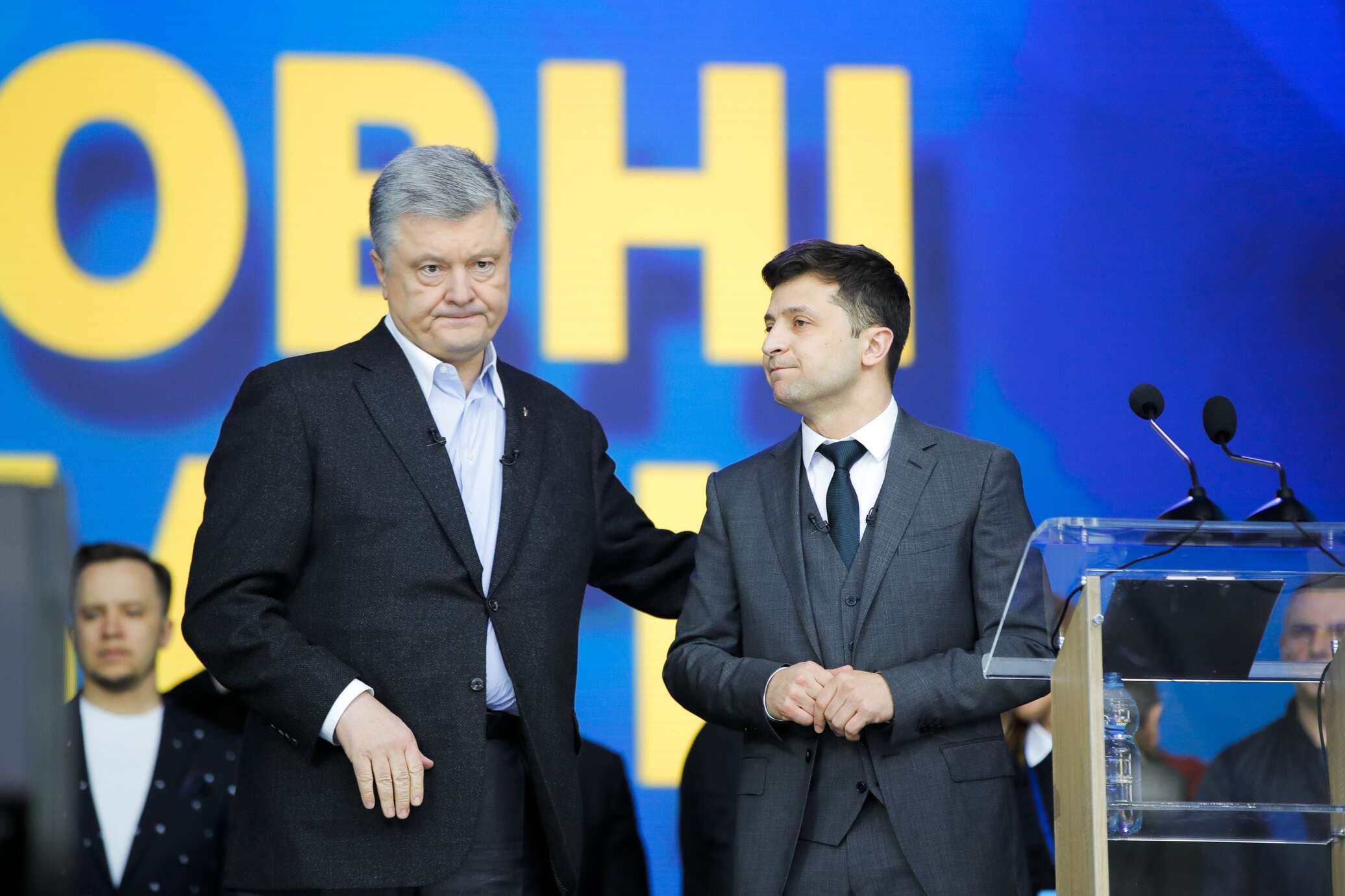 19 апреля. Киев. Дебаты Петра Порошенко и Владимира Зеленского на НСК "Олимпийский" были богаты на курьезные моменты, но дуэт коленопреклонённых соискателей власти стал непревзойденным хитом.