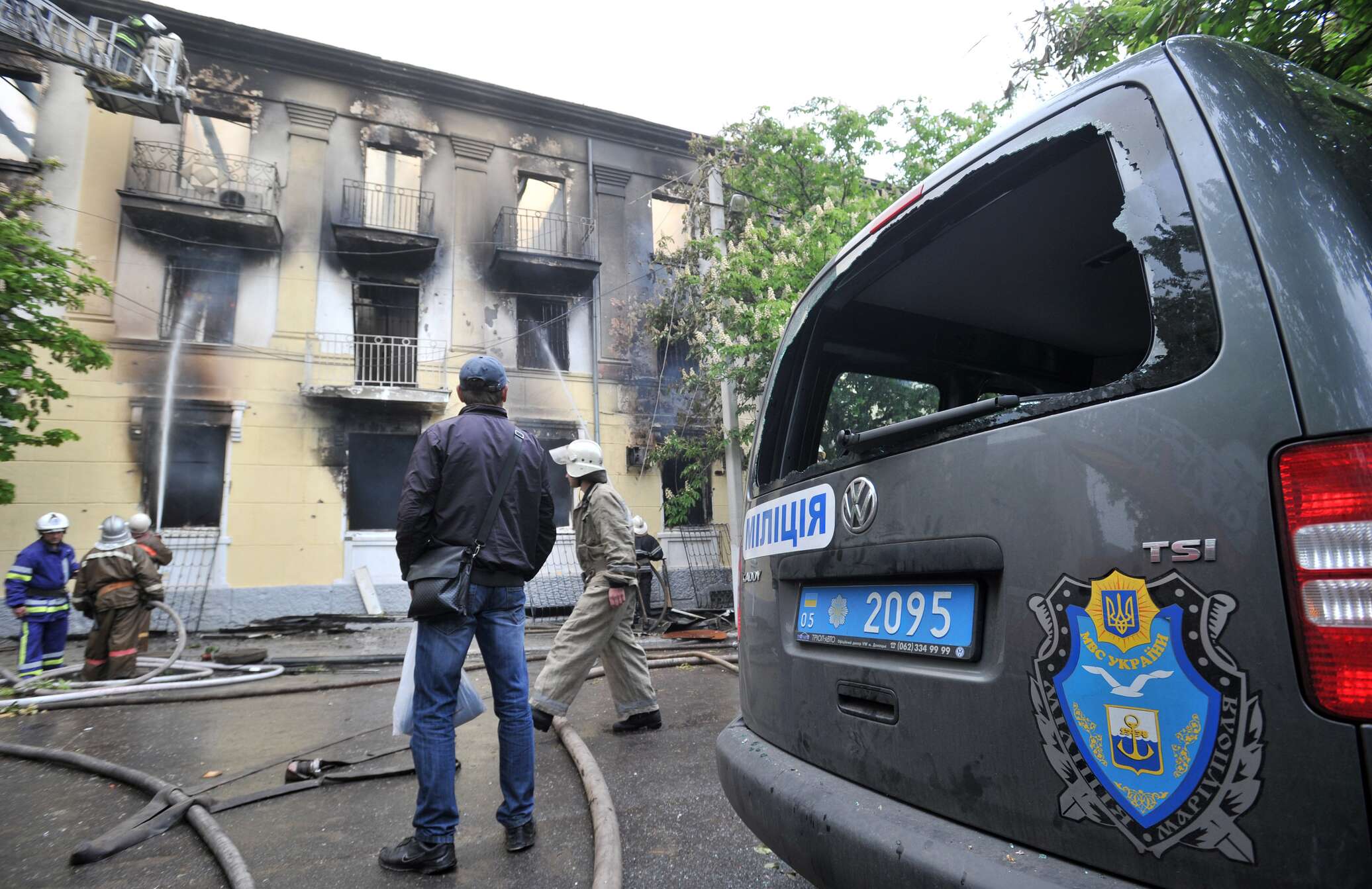 В те дни пресса могла спокойно перемещаться по территории уходящей уже в небытие Донецкой области Украины, поэтому 10 мая в Мариуполе обгоревший остов милицейского здания и кровь на асфальте рассматривали журналисты московских и ведущих западных СМИ.