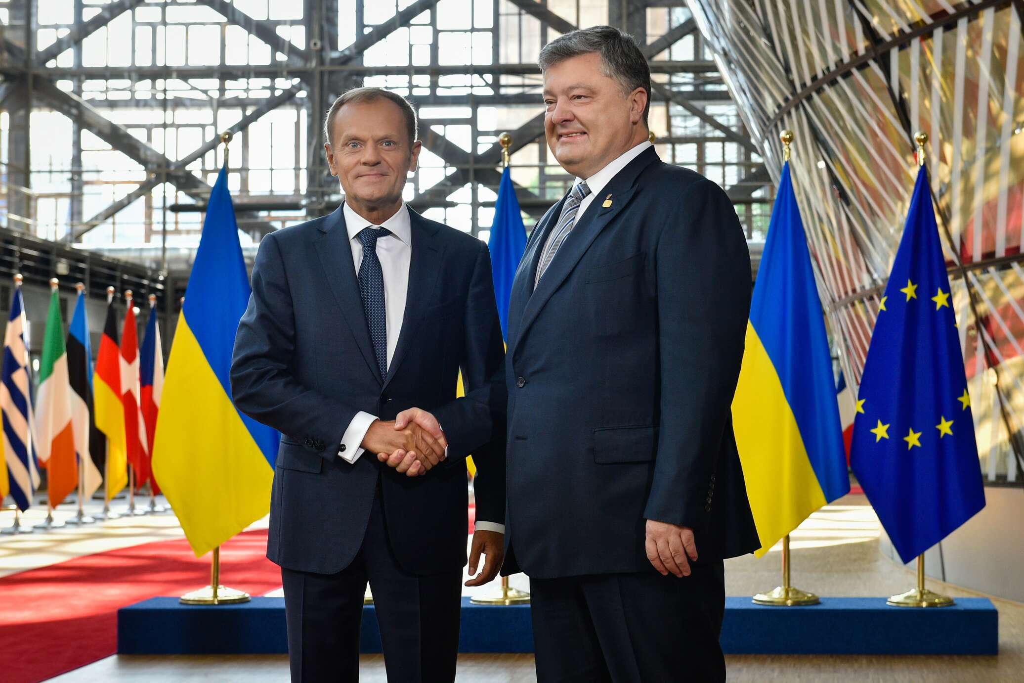 «16:45 (17:45 мск — ред.) — встреча с президентом Украины Петром Порошенко», — говорится в расписании Туска.