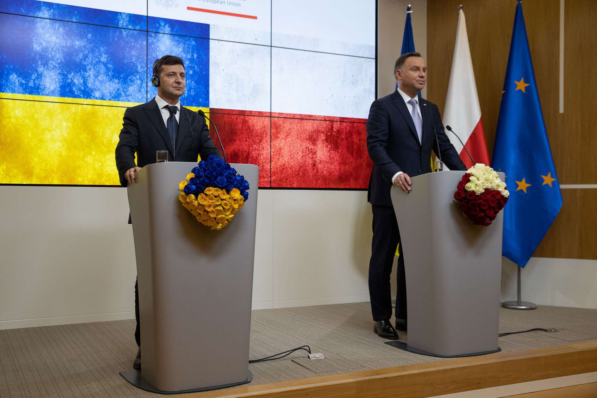 Собственно, именно исторические вопросы явно стали ключевыми во время разговора Дуды и Зеленского — ведь никаких других противоречий между странами нет. Так, на совместном брифинге после встречи Анджей Дуда подчеркнул, что Польша «постоянно поддерживает проевропейские и евроатлантические устремления Украины, а также поддерживает усилия Украины по восстановлению её территориальной целостности, окончанию военного конфликта в Донбассе и оккупации Крыма, чтобы Украина могла опять спокойно развиваться в своих естественных границах».