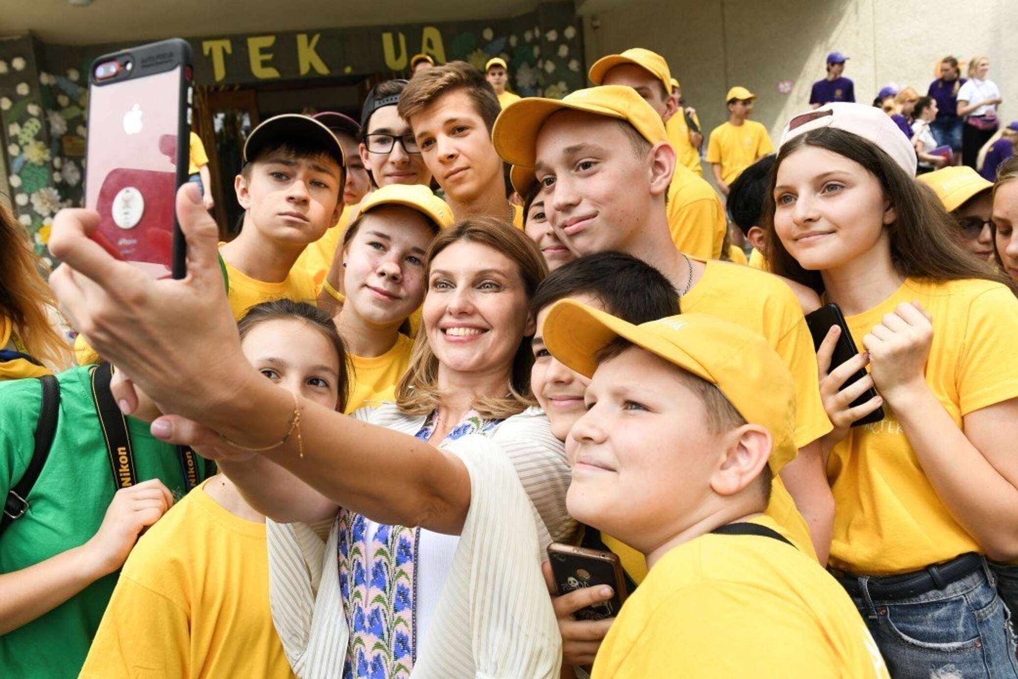 Вместе с Зеленской в детский лагерь приехал прославленный легкоатлет и президент Национального олимпийского комитета Сергей Бубка, а также актеры Александр Петренко и Ирина Кудашова.