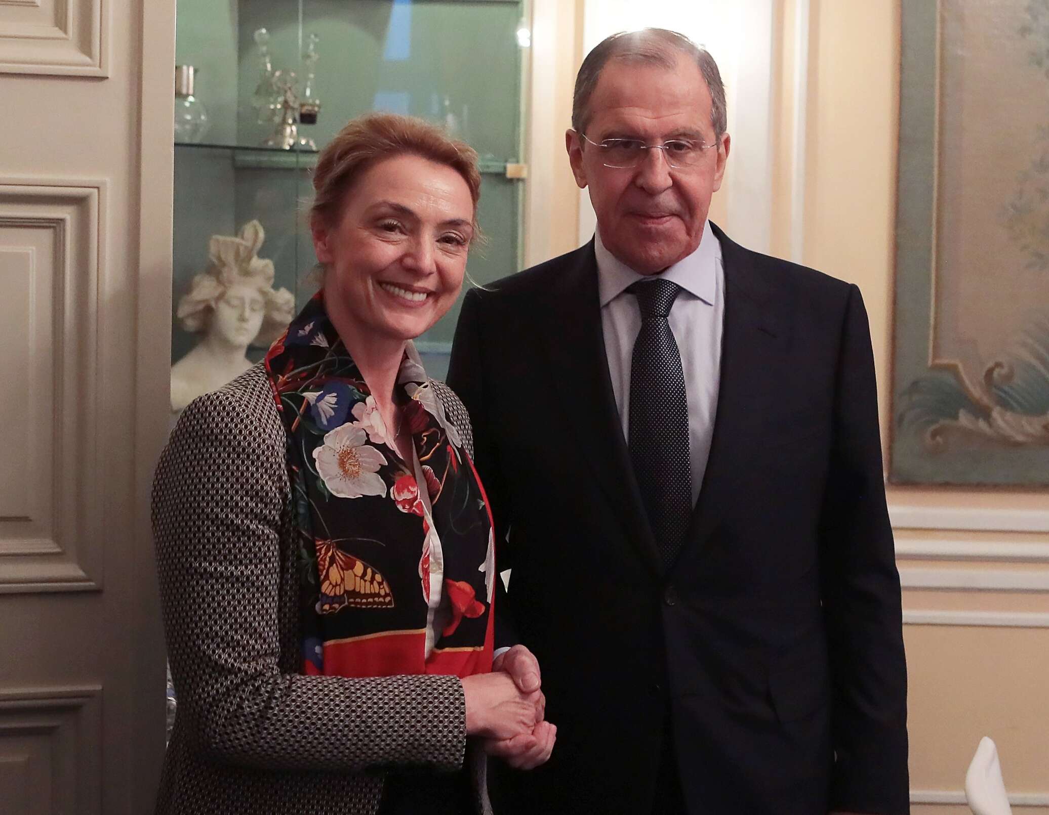 Председатель комитета Государственной Думы по международным делам Леонид Слуцкий поздравил Пейчинович-Бурич с избранием и пригласил посетить Россию.