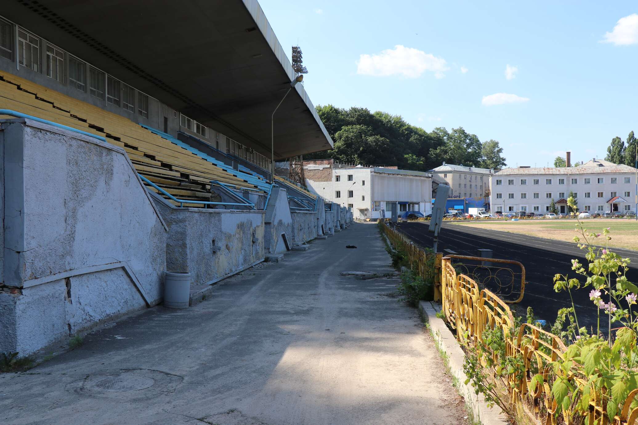 Не лучше обстоят дела и с трибунами. Они разрушались при старых собственниках и продолжают в том же духе при новых. Во внутренних помещениях под трибунами можно снимать фильм ужасов: кучи строительного мусора, просевшие и вздувшиеся от сырости потолки и стены, всюду годами не убиравшаяся грязь, мусорные кучи, углы затянуты какой-то инопланетной паутиной.