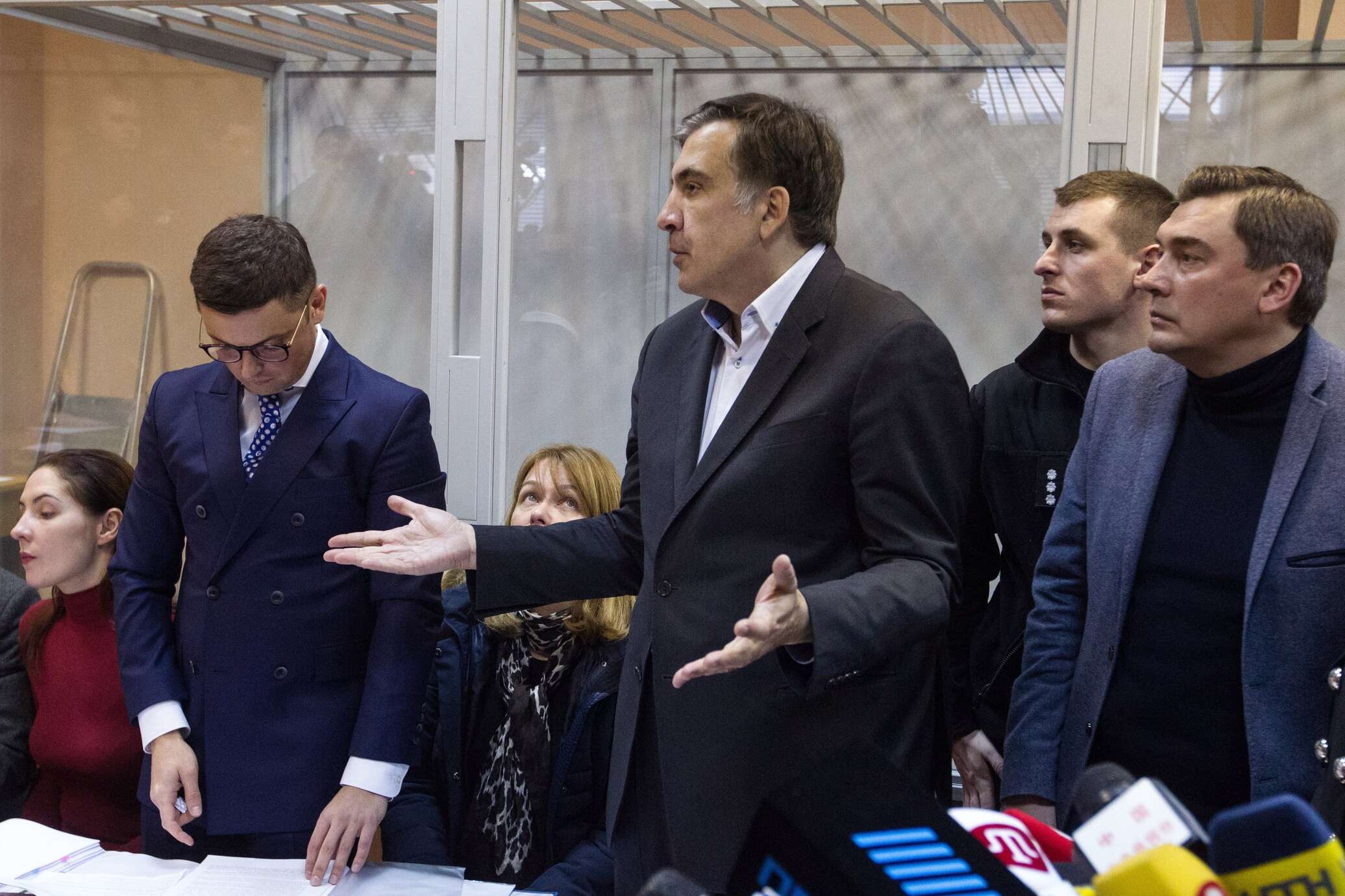 Около 16:00 Саакашвили повел своих соратников на штурм зала суда. В коридоре началась давка и суматоха, полиция оцепила зал судебного заседания. Группа поддержки Труханова выстроилась плотным кордоном и не позволила Саакашвили приблизиться к залу. В его адрес звучала неприкрытая, а порой и нецензурная брань, которую не могли перекричать его обычно крикливые соратники. В итоге Саакашвили выгнали из здания суда.