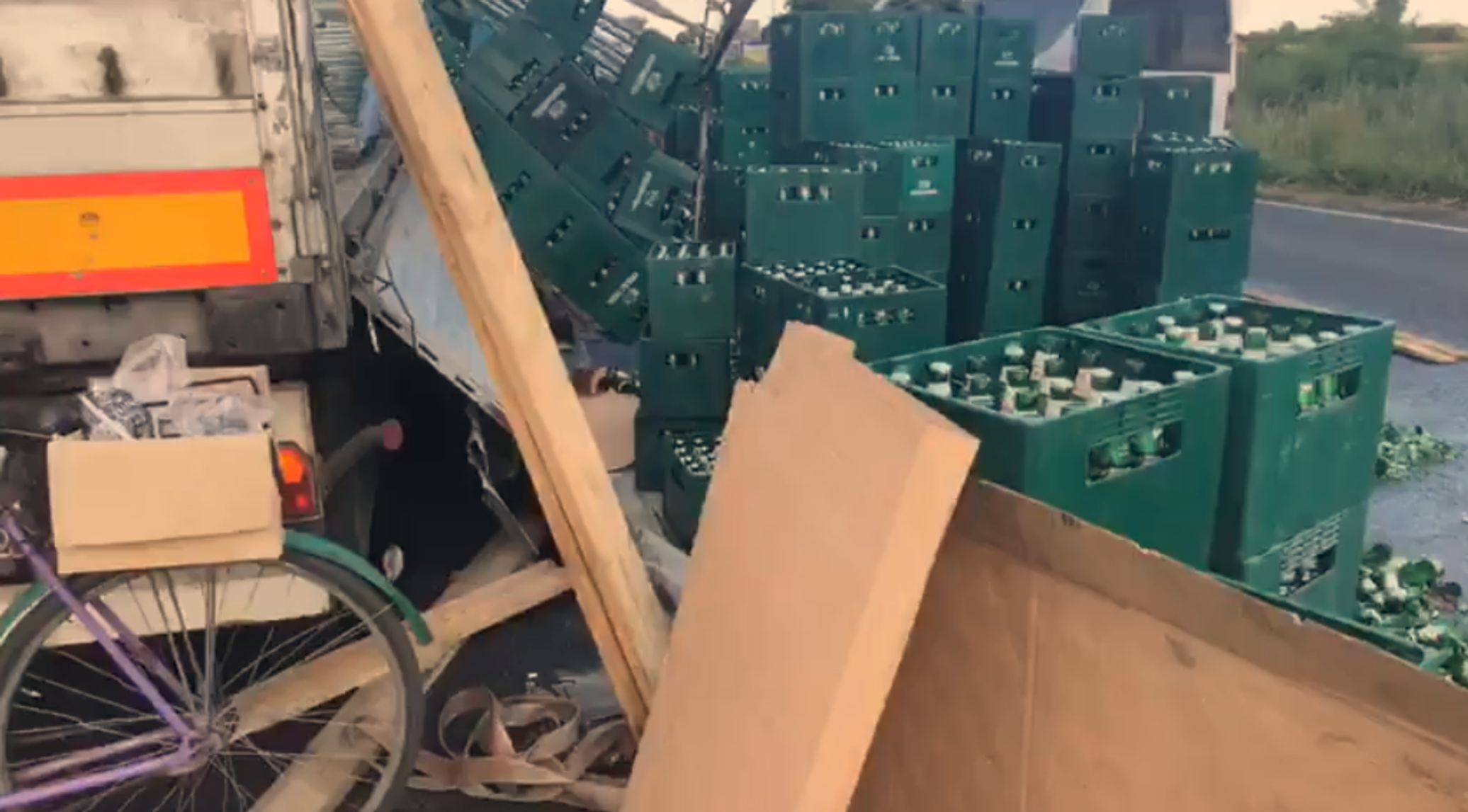 Под Киевом из грузовика на дорогу высыпались ящики с пивом - 13.07.2022 Украина.ру