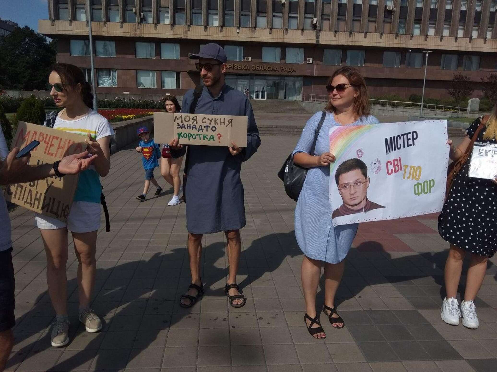 Мужчины в платьях и девушки в коротких шортах собрались на площади перед зданием Запорожского областного совета, чтобы выразить свой протест против запорожского чиновника Владислава Марченко, который назвал женщин в откровенных нарядах проститутками. Об этом в четверг, 1 августа, сообщается на местном сайте mv.org.ua