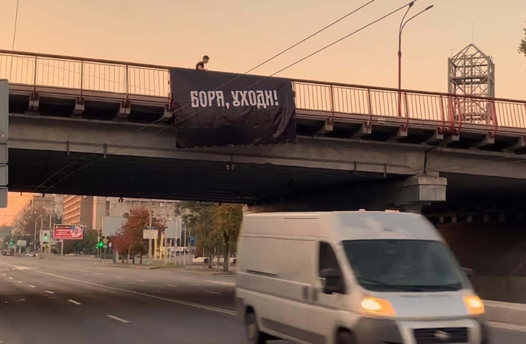 На Центральном мосту в Днепре появился баннер с надписью «Боря, уходи!» Обращение адресовано нынешнему мэру города Борису Филатову. Об этом на своей странице в Facebook во вторник, 13 августа, сообщил блогер Василий Крутчак