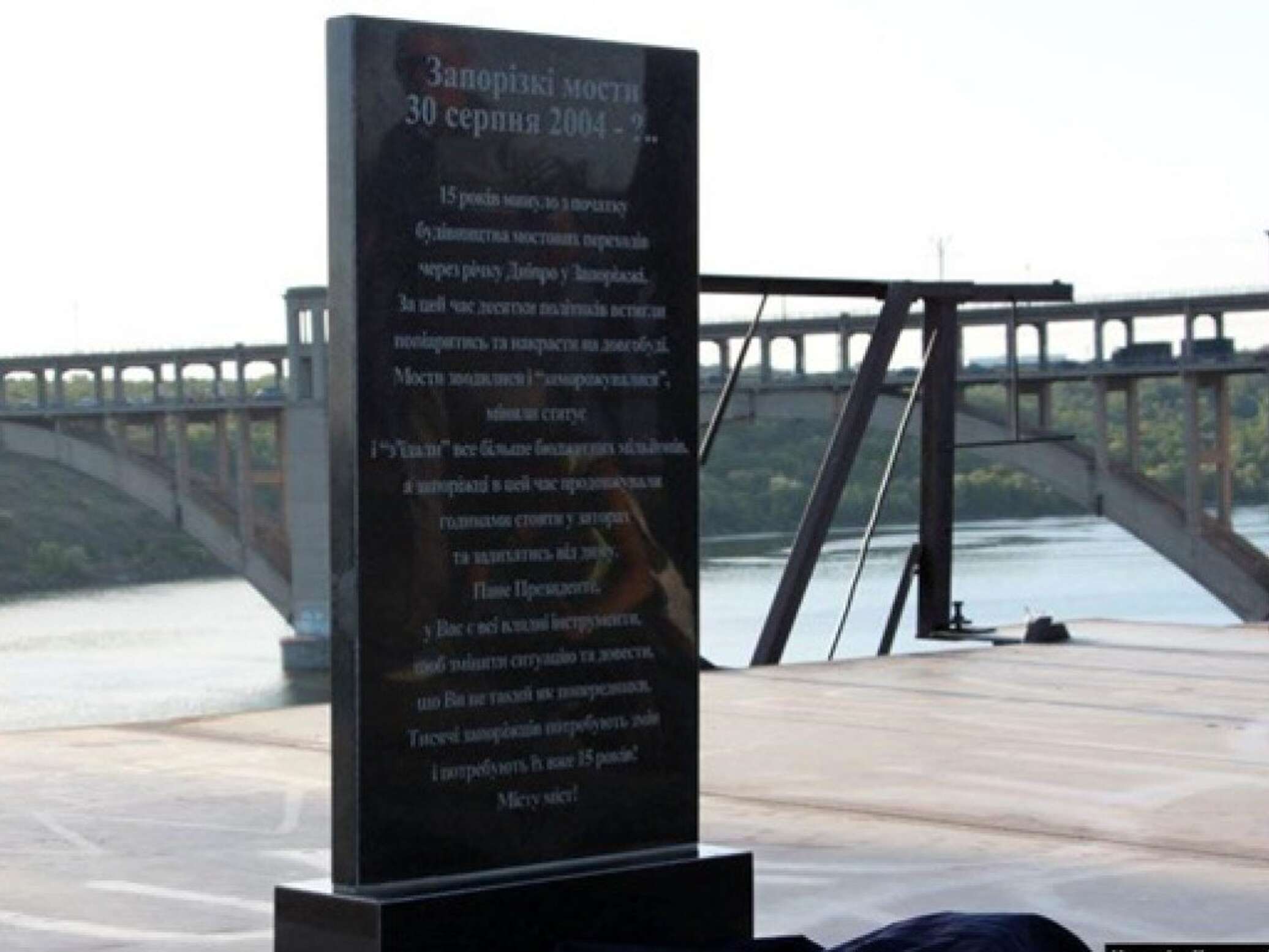 Активисты установили на левобережной части недостроя памятный знак с датой закладки мостов и информацией об их сооружении и обращением к действующей власти с требованием завершить строительство.