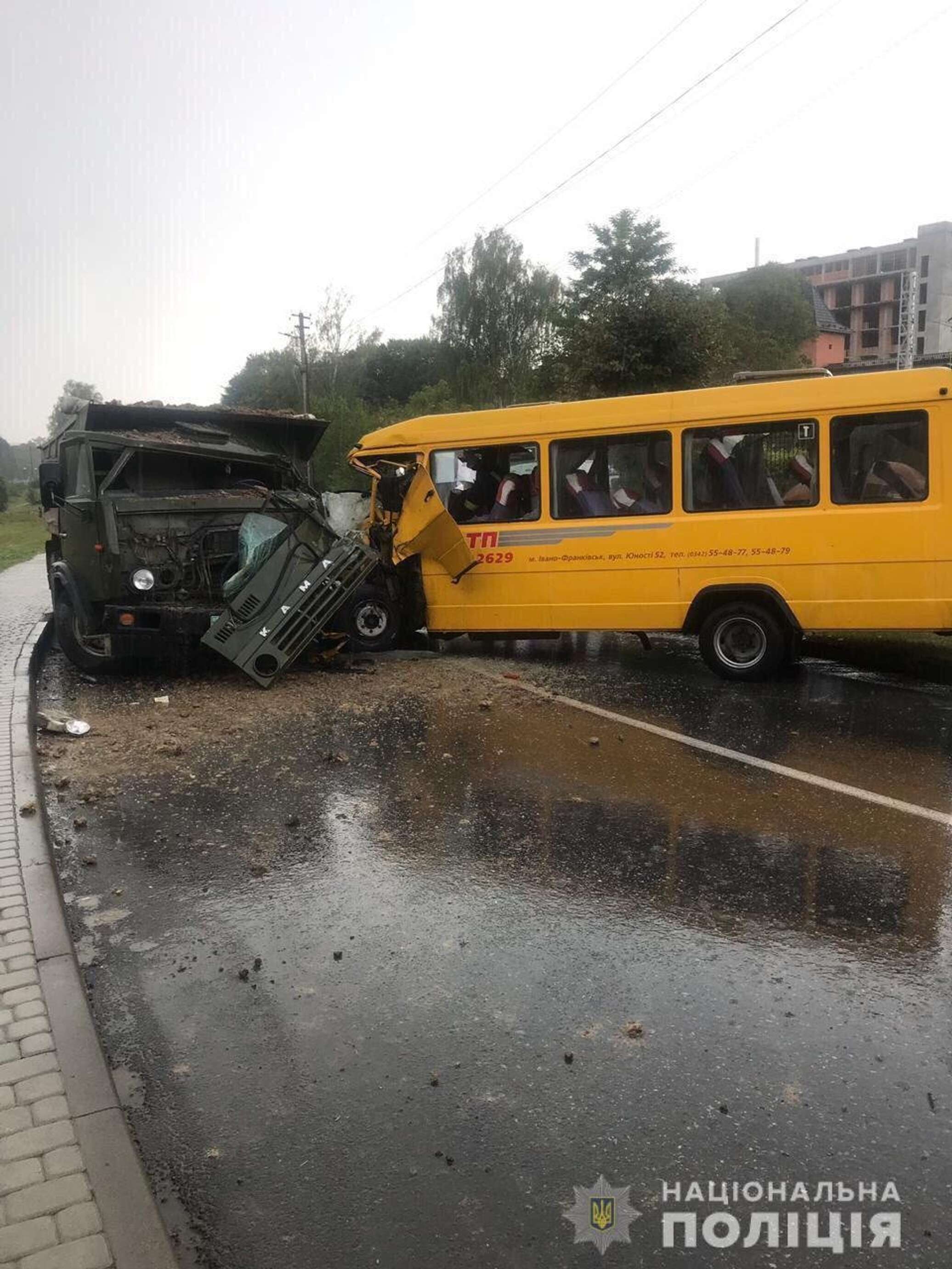 Маршрутный автобус и КамАЗ столкнулись примерно в 16:45 понедельника, 2 сентября в городе Моршин Стрыйского района. В момент ДТП в салоне маршрутки находилось 24 человека. По данным полиции, с различными травмами в больницу были доставлены более 10 пассажиров.