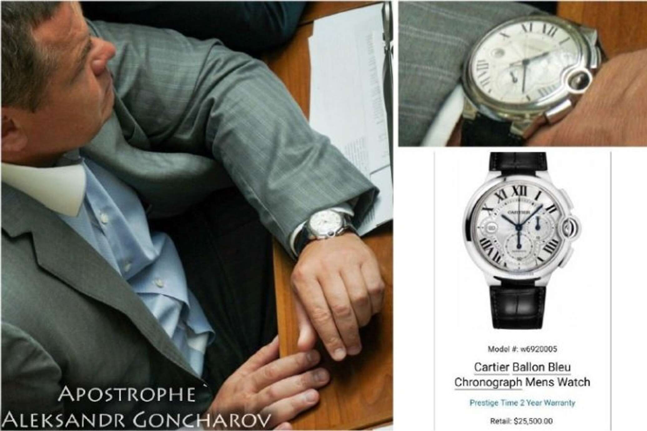 По данным издания, элитный аксессуар от Cartier — Ballon Bleu Chronograph Men's Watch на руке депутата стоит столько же, сколько и хороший автомобиль, — 25 тыс. долларов, или 1,6 млн рублей.