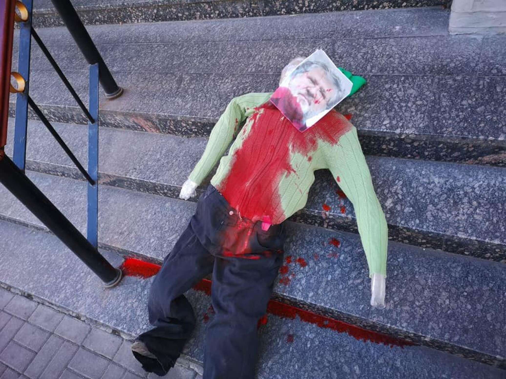 Во время праздника Суккот ко входу в синагогу Бродского на улице Шота Руставели подбросили чучело с фотографией олигарха Игоря Коломойского вместо лица, облитое красной краской.