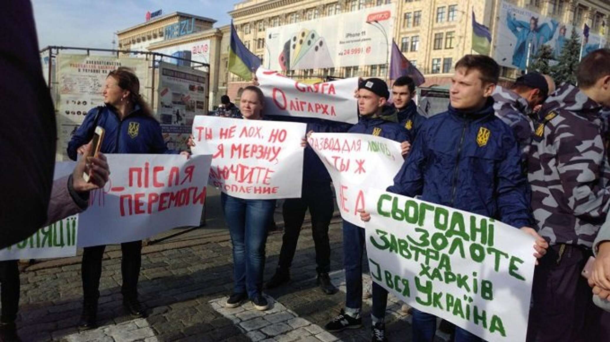 Митингующие преследуют сразу несколько целей: выступают против имплементации «формулы Штайнмайера», введения регистраторов расчетных операций (РРО) для предпринимателей, а также требуют от главы государства вмешаться в ситуацию с отоплением в Харькове. По данным издания, в пикете принимают участие около 100 человек.