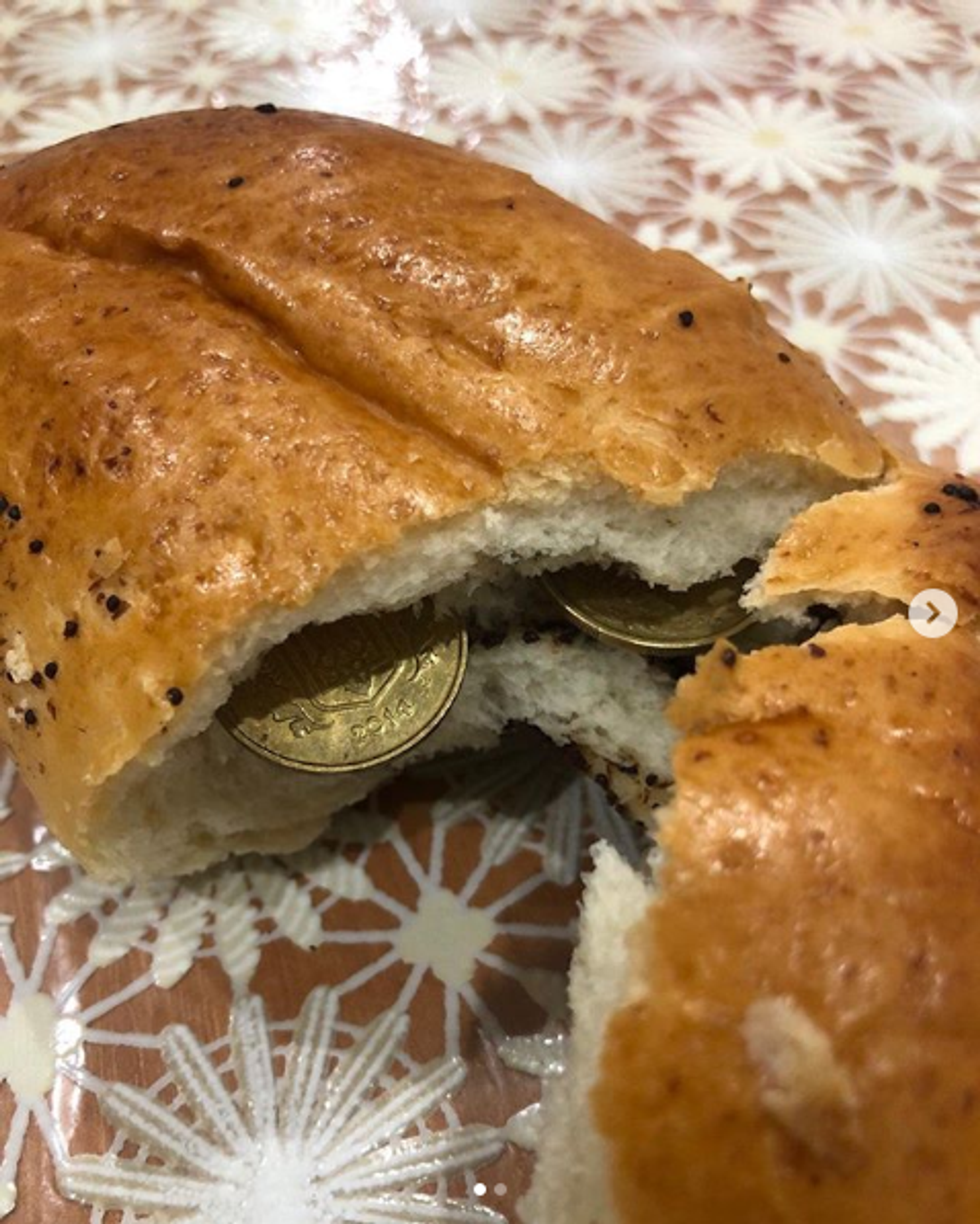 Жительница украинского Мелитополя нашла в купленной на местном рынке булочке монеты по 50 копеек. Соответствующие снимки опубликовали в группе «Типичный Мелитополь» в Instagram