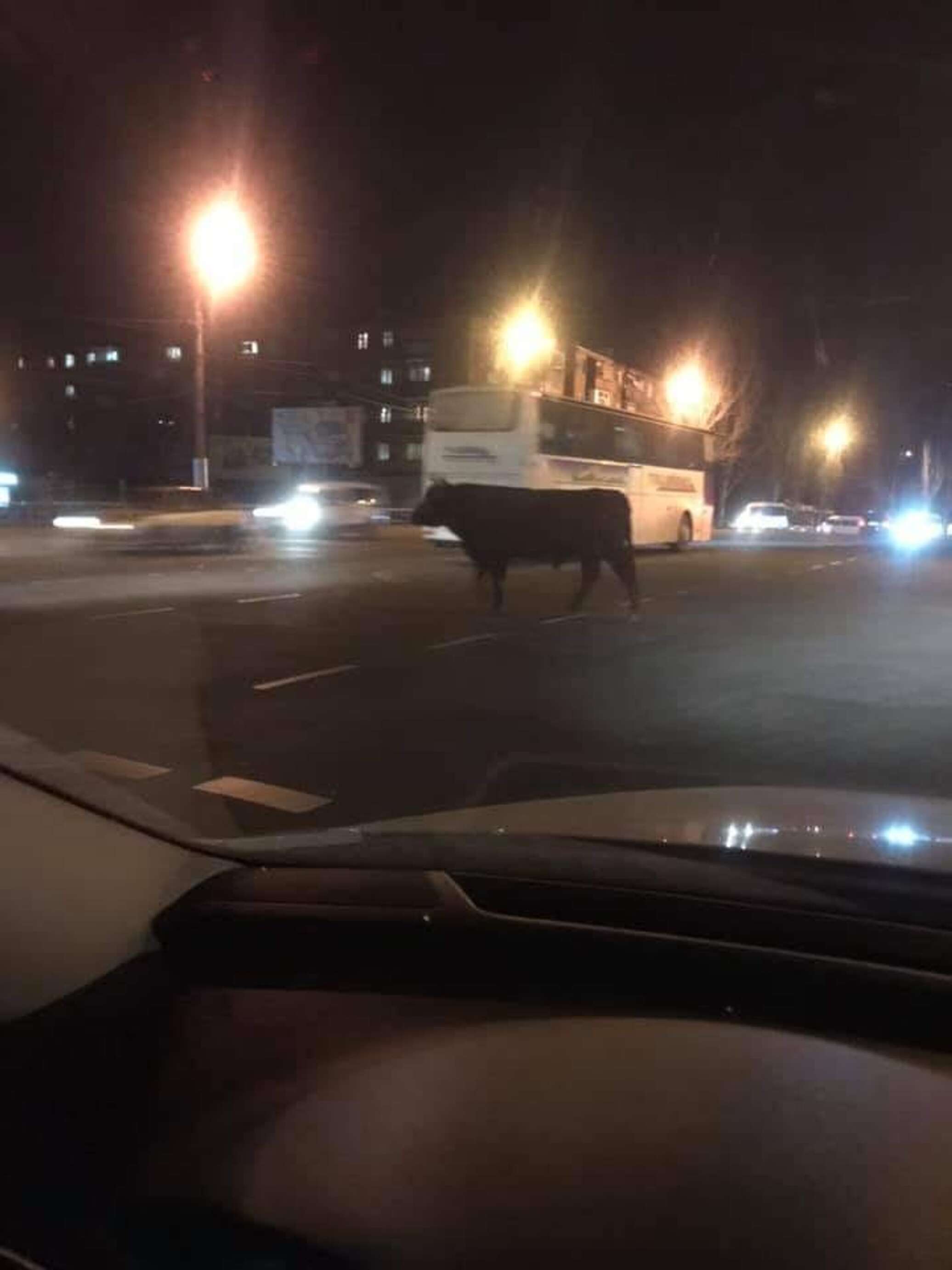В центре Кривого Рога прямо на проезжей части водители наблюдали огромного быка. Об этом сообщила Facebook-группа «ТРК "Рудана" Кривой Рог» 14 ноября