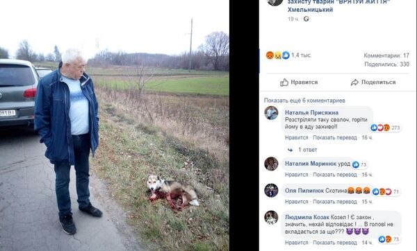 По данным местного сайта vsim.ua, происходящее заметил проезжавший мимо солдат спецназа. Пёс был полностью окровавлен.