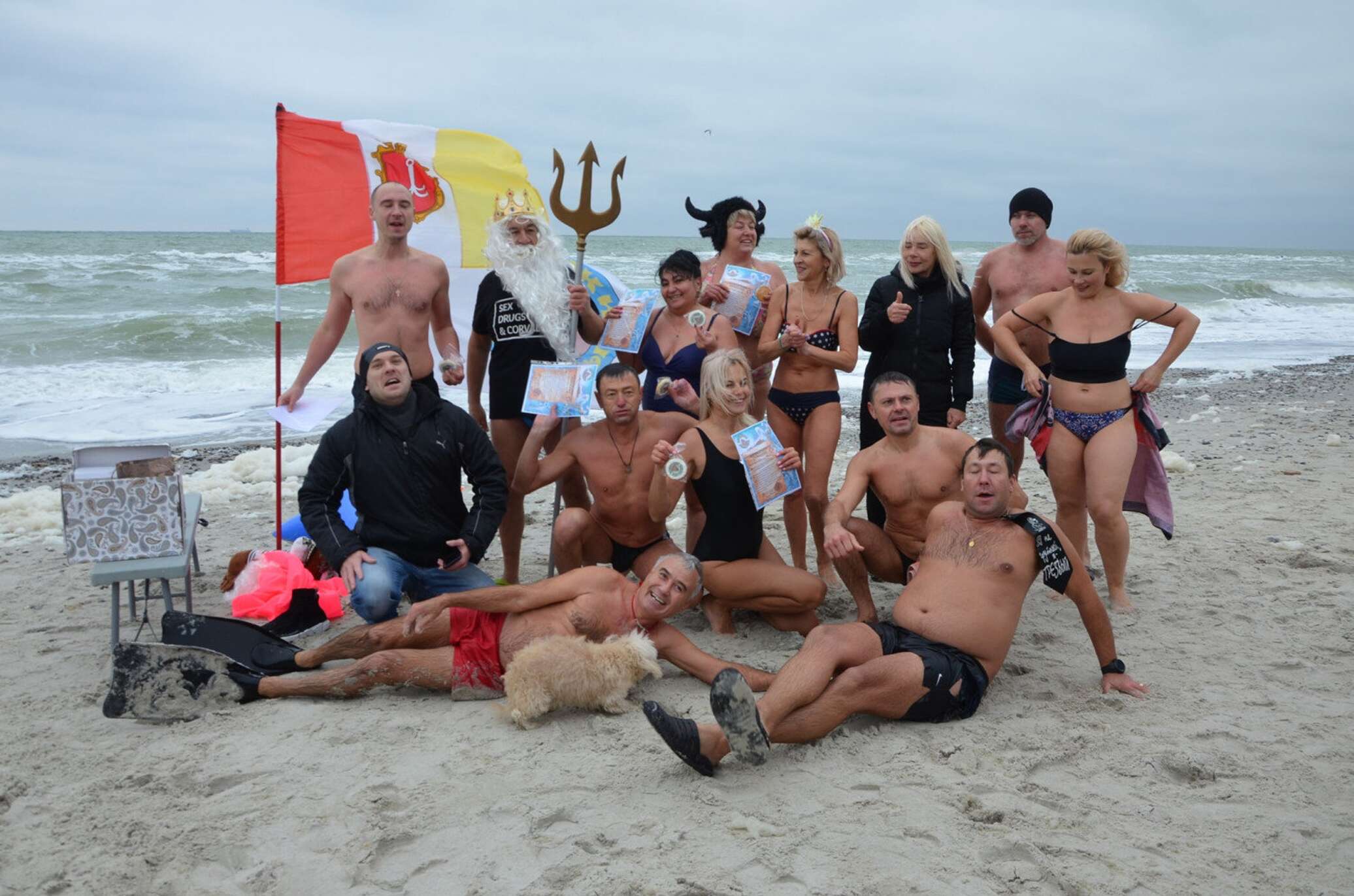 Накануне праздника воду на «Ланжероне» проверили. Убедившись, что туда загрязнение не добралось, моржи приступили к водным процедурам. Кроме заплыва в ледяной воде (температура воды была около 11 градусов) участники праздника устроили костюмированное представление, в рамках которого Нептун со своей свитой вручал грамоты новичкам.