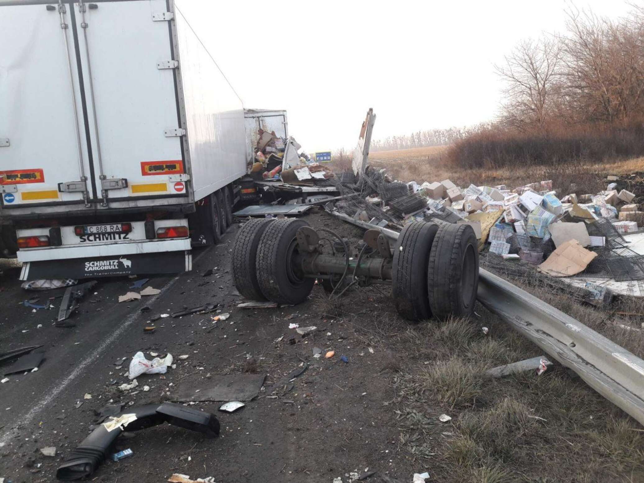 «В ДТП попали пять грузовых, пять легковых автомобилей и один рейсовый автобус сообщением "Варшава — Херсон". В последнем находились 20 пассажиров, из которых никто не пострадал», — говорится в сообщении.