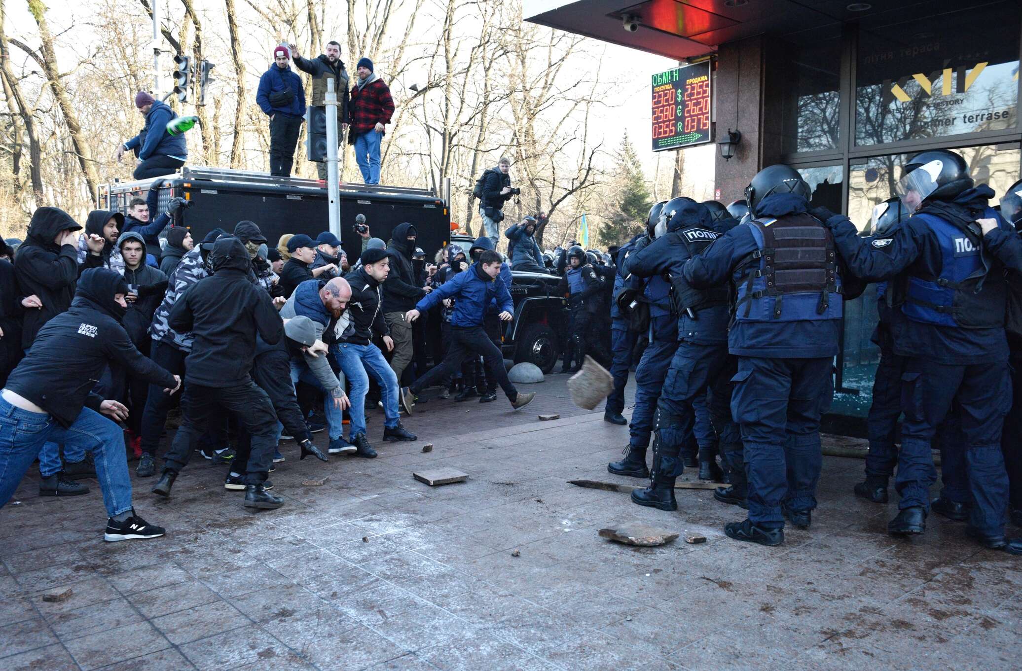 Во вторник, 17 декабря, в Киеве под зданием Верховной Рады радикалы из «Национального корпуса» жестко схлестнулись с Национальной полицией. Во время драки пострадали 23 полицейских, 17 силовиков доставили в больницы.