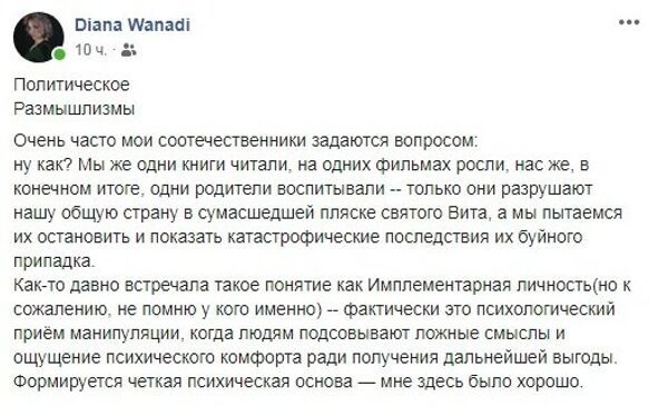 Как-то давно встречала такое понятие как Имплeмeнтapная личность (но к сожалению, не помню у кого именно) — фактически это психологический приём манипуляции, когда людям подсовывают ложные смыслы и ощущение психического комфорта ради получения дальнейшей выгоды.