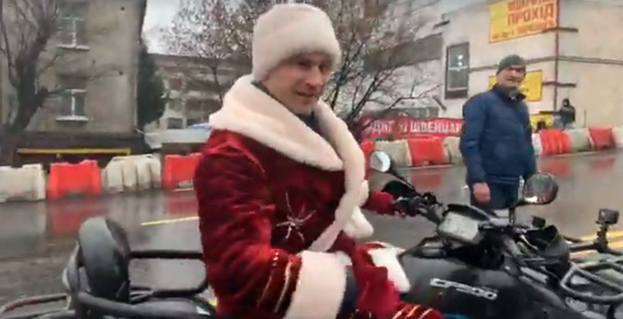 Транспортную артерию украинской столицы мэр открыл, проехав по мосту на квадроцикле в костюме Санта-Клауса.
