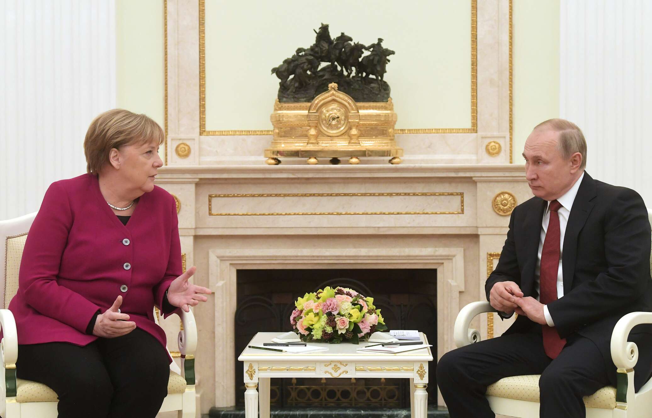 В ходе многочасовой встречи главы государств обсудили обстановку на Ближнем Востоке и в Ливии, урегулирование кризиса на Украине, а также вопросы двусторонних отношений. Точка зрения Владимира Путина и Ангелы Меркель, относительно необходимости последовательной реализации минских соглашений, полностью совпала.
