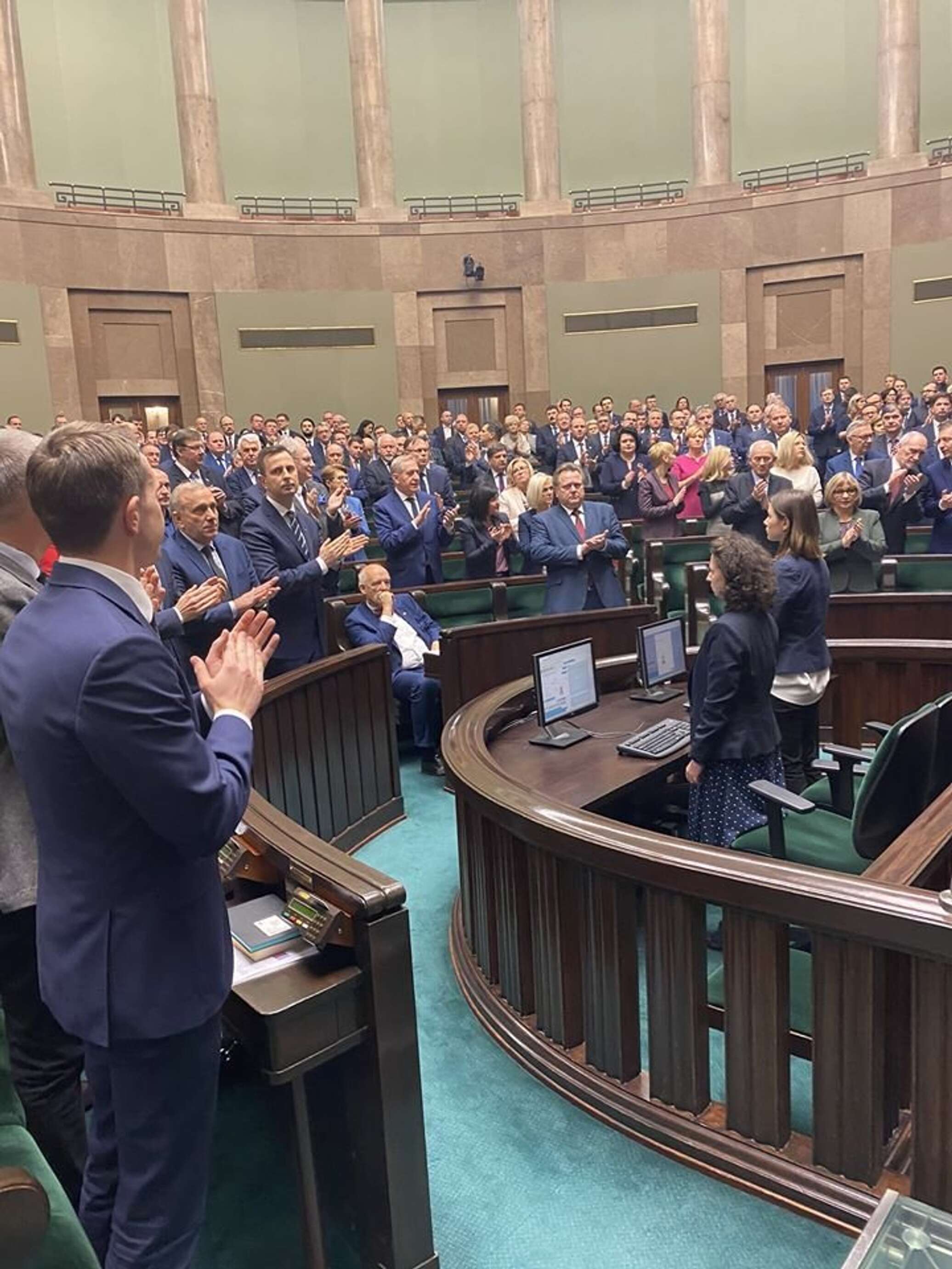 Примечательно, что резолюция была поддержана Сеймом без голосования, через так называемую аккламацию — то есть принятие решения на основе реакции участников заседания, выражаемой в виде аплодисментов, восклицаний, реплик и прочего непосредственного (неформального) изъявления своего мнения. После того как спикер Сейма Эльжбета Витек зачитала текст резолюции и предложила принять ее путём аккламации, депутаты, собравшиеся в зале пленарных заседаний, встали и выразили своё согласие аплодисментами. Премьер Моравецкий сразу же написал в "Фейсбуке": «Сегодня в Сейме Республики Польша произошло нечто очень важное. Провокационные заявления российских политиков, фальсифицирующих польскую историю, встретили резкий отклик со стороны депутатов всех политических партий. Специальная резолюция по этому вопросу принята единогласно!» Но картинку единогласия подпортил властям Польши один человек — депутат от националистической «Конфедерации» Януш Корвин-Микке, глава партии KORWIN, который не встал и не хлопал в ладоши.