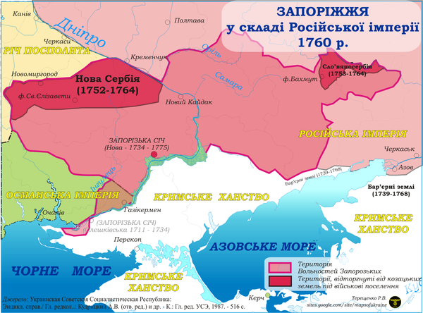 Когда у нас говорят о временах Екатерины II, предпочитают вспоминать о разгроме Запорожской Сечи и официальном введении крепостного права (де-факто оно существовало и до этого). Однако при этом как-то естественно забывается, что именно в ходе русско-турецких войн XVIII века было осуществлено заселение (кстати, в значительной степени украинцами) бывших земель «Дикого Поля» — Новороссии и Крыма. Последний был присоединён к Российской империи в 1783 году.