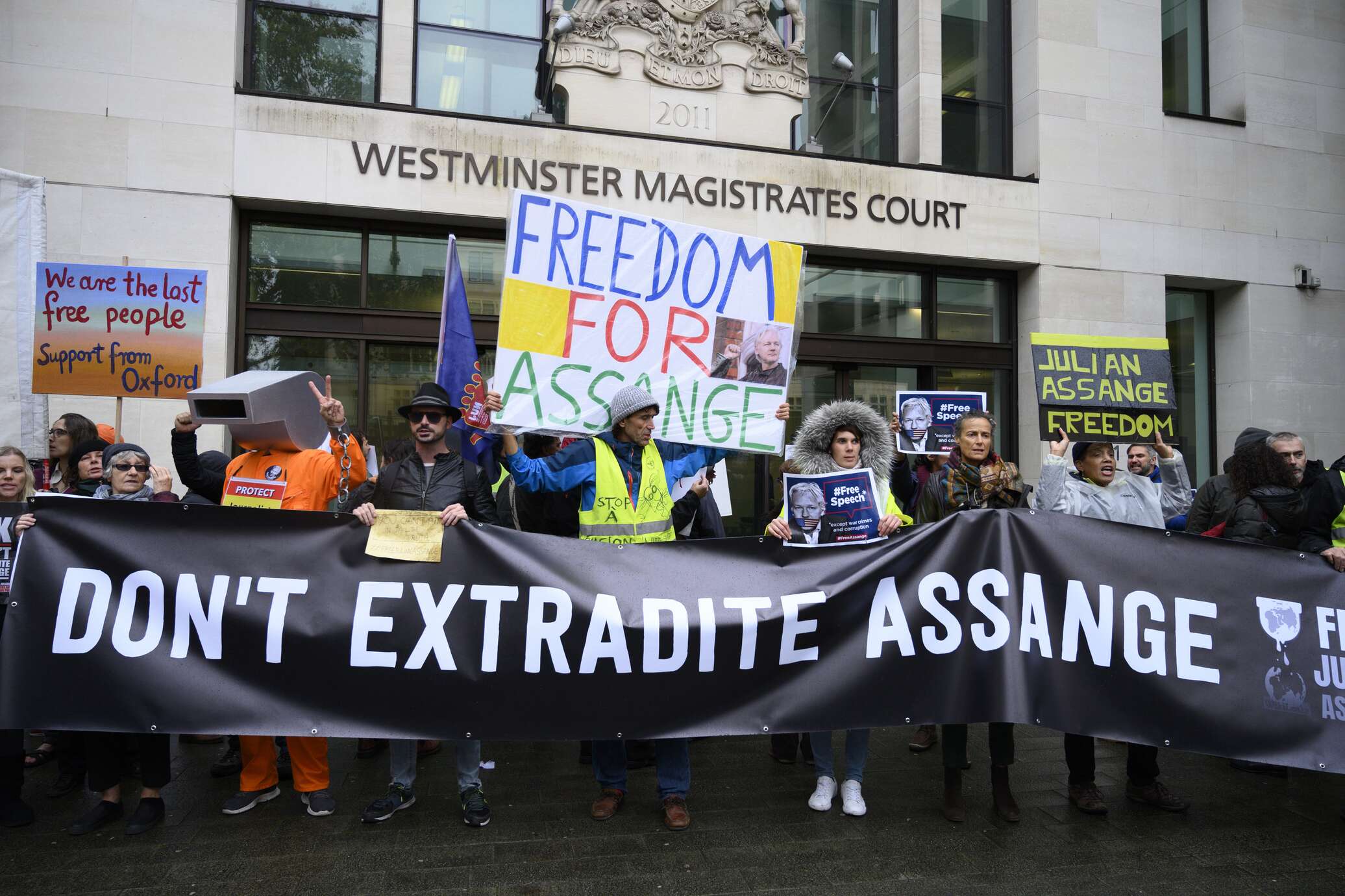 Суд начинается 24 февраля. Впервые Закон США о шпионаже был использован против кого-то, кто опубликовал материал, предоставленный информатором. Все журналисты используют информацию из конфиденциальных источников, поэтому судебные иски являются чрезвычайно опасным прецедентом, угрожающим журналистам всего мира и новостным СМИ. Подписавшиеся считают, что лишение свободы Ассанжа и судебное разбирательство являются серьезной ошибкой и несправедливостью.