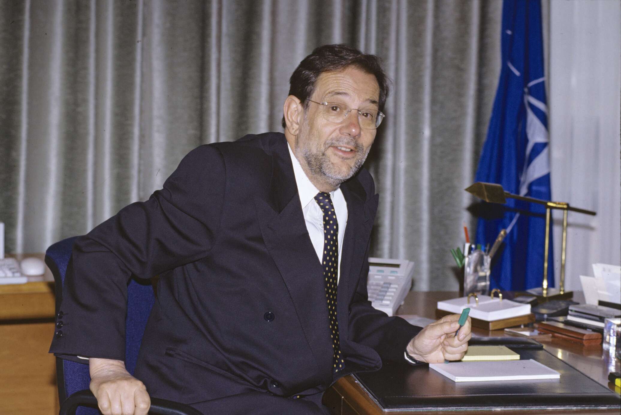 Хавьер Солана, генеральный секретарь НАТО, в своем рабочем кабинете