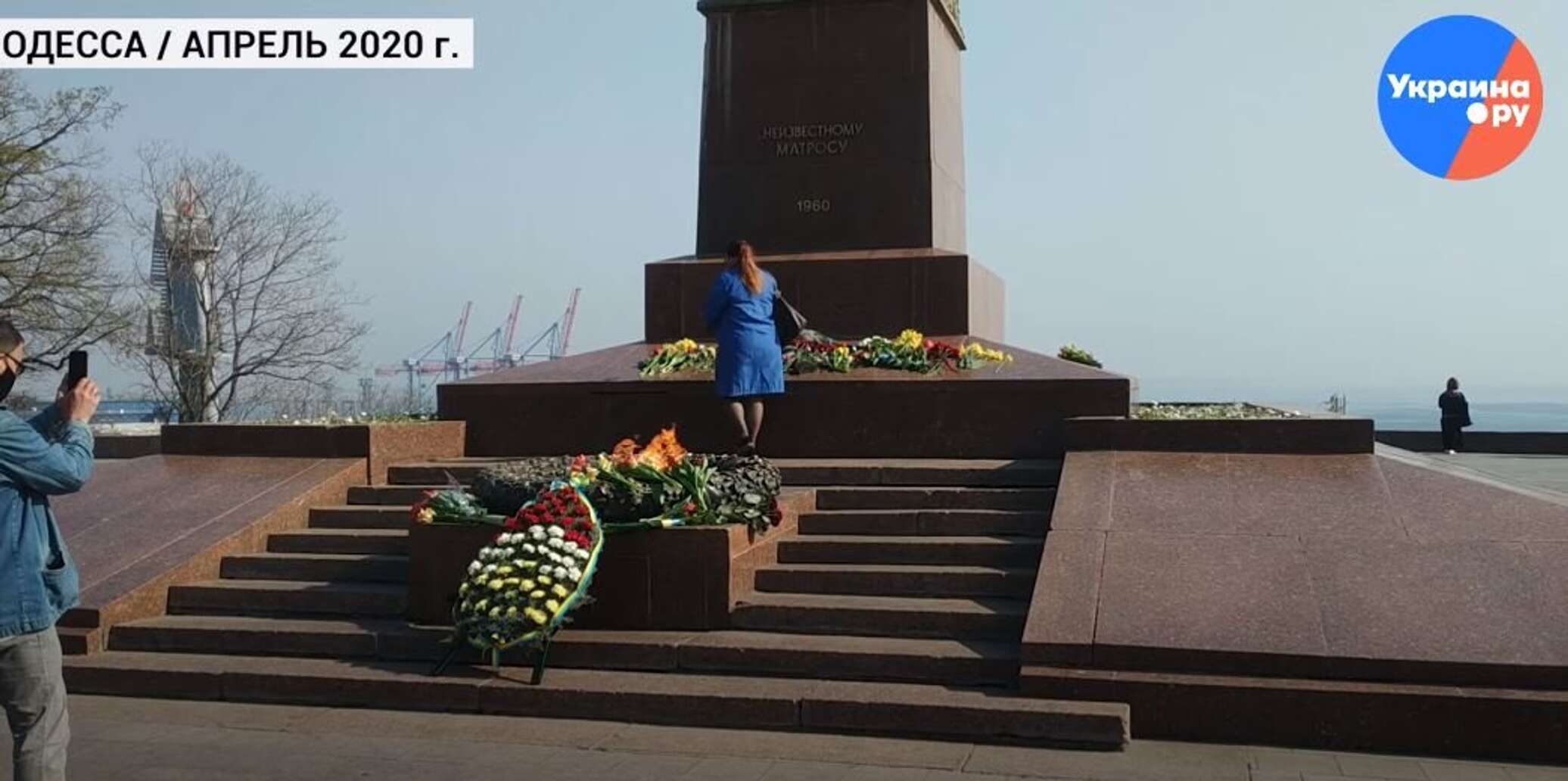 Одесситы, несмотря на карантинный запрет посещать парки, возложили цветы к памятнику Неизвестному матросу.