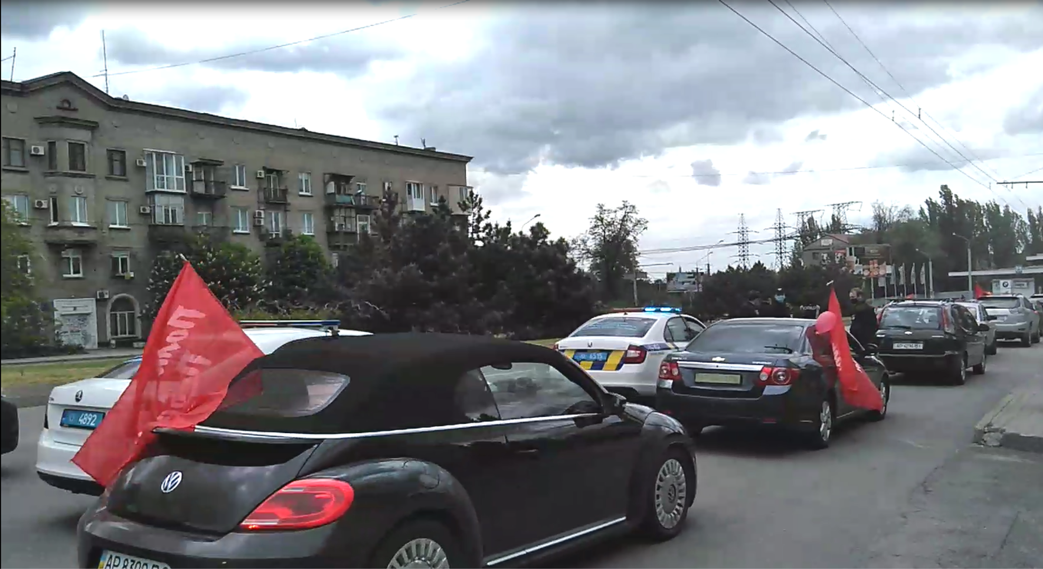 На некоторое время инциденты закончились. Однако на обратной дороге, в районе пересечения ул. Богдана Хмельницкого с проспектом Металлургов, полиция остановила автопробег и начала переписывать номера машин.