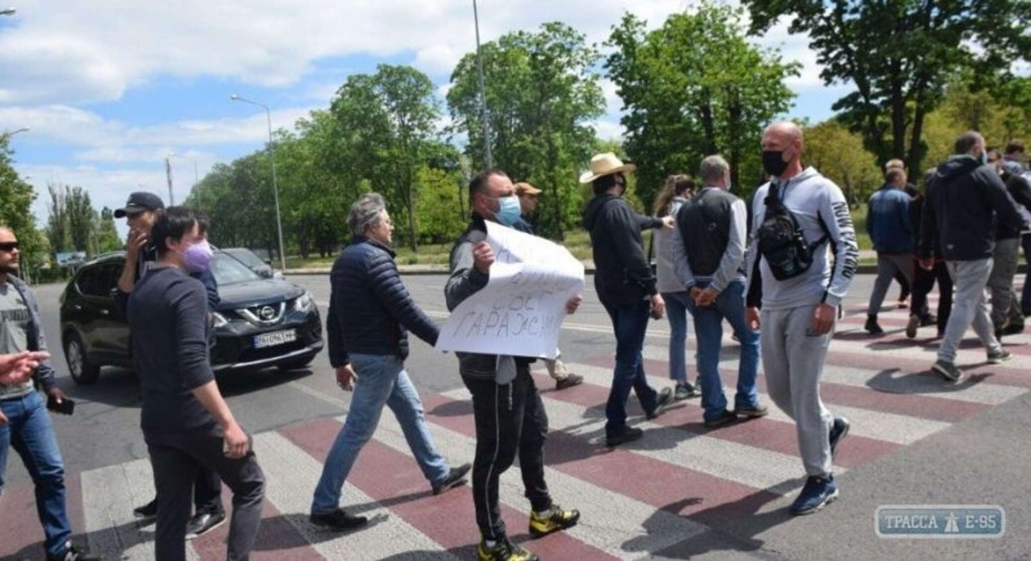 Протестующие ходили по зебре и блокировали проезд машин. Автомобилисты объезжали место акции через дворы.
