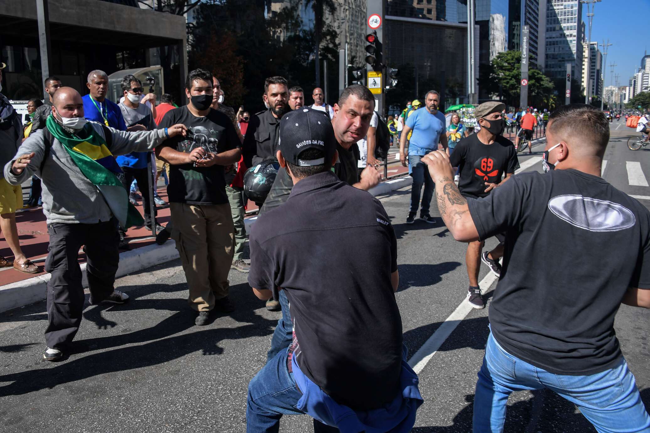 «Я думаю, что причиной этого (потасовки — ред.) стал флаг. По информации, которую мне доложили полицейские, причина в том, что туда пришли люди с неонацистским флагом», — сказал исполнительный секретарь полиции Сан-Паулу Алваро Камило.