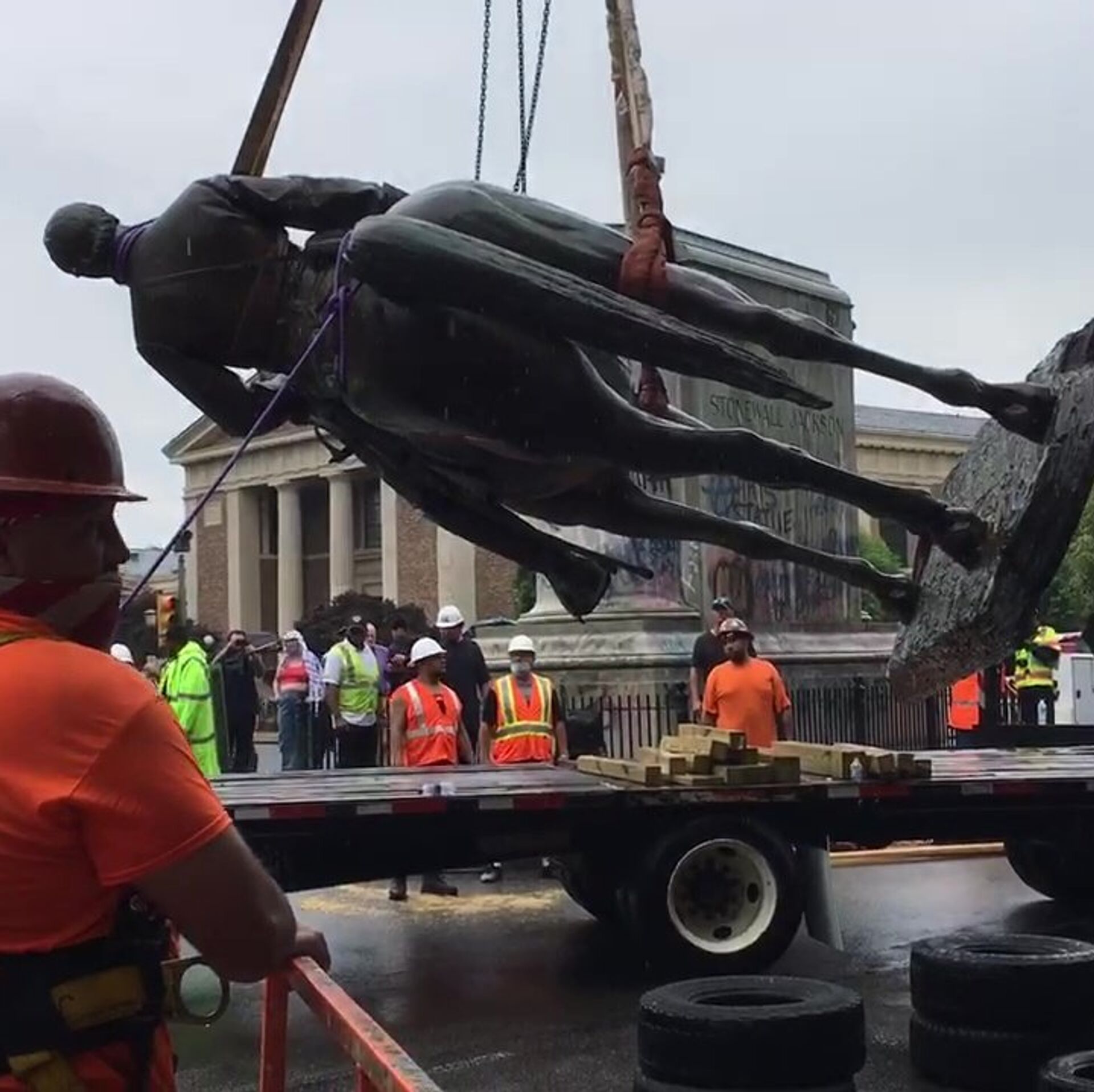 В четверг статую генерала конфедератов Томаса Джексона демонтировали с постамента в городе Ричмонд в американском штате Виргиния, сообщил местный телеканал.