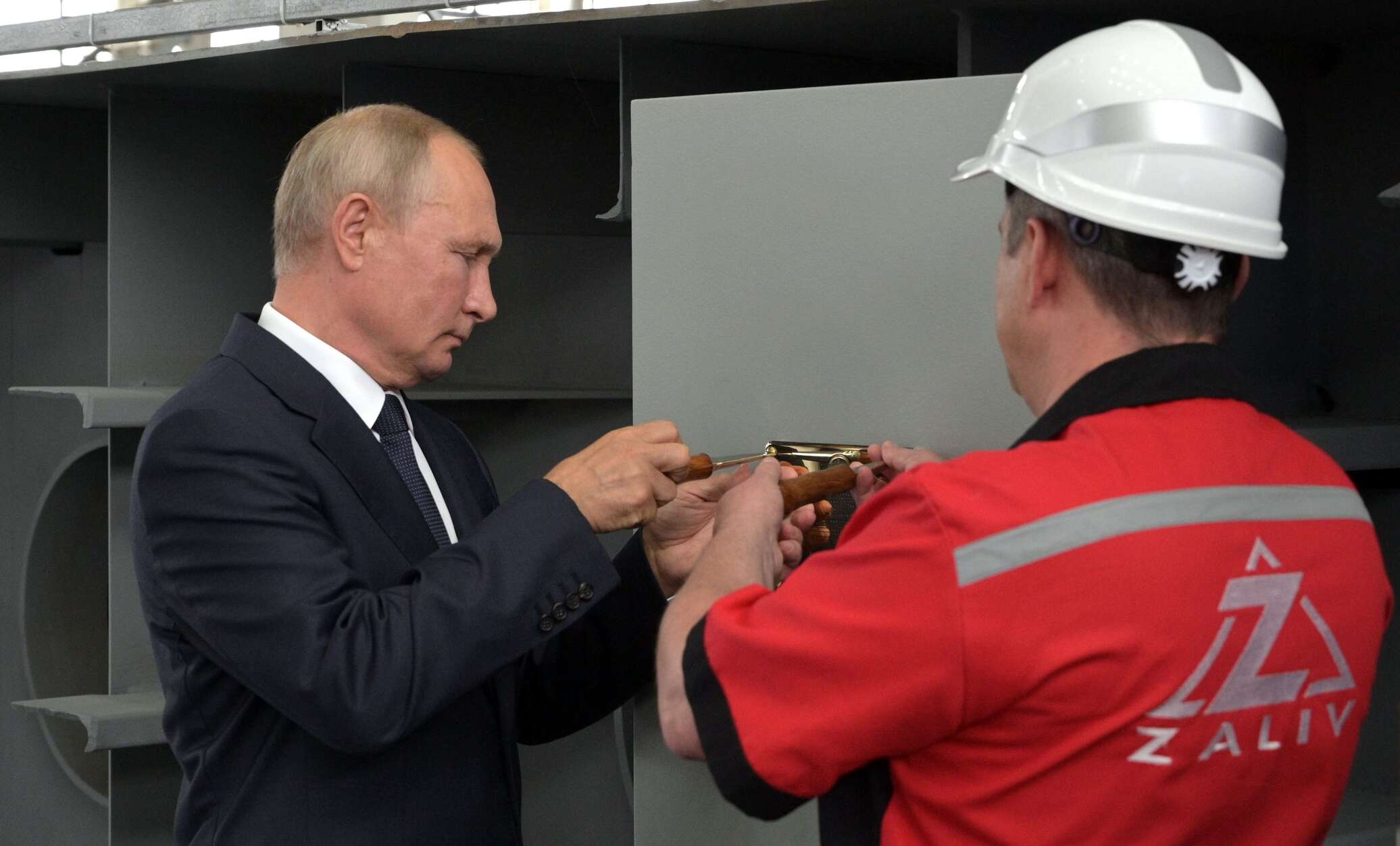 Президент поздравил работников всех трех предприятий с «большим событием, с очень важным и значимым шагом в развитии Военно-морского флота».