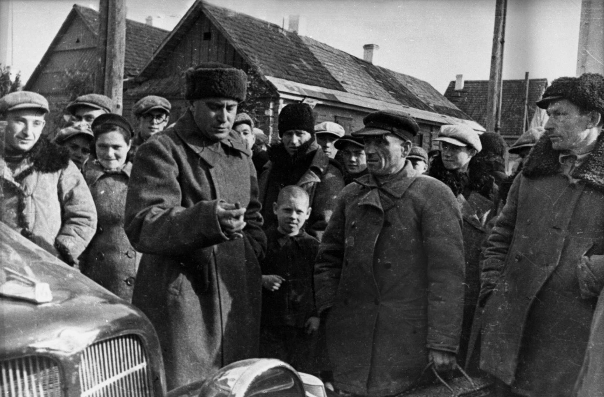 © РИА Новости . Виктор ТеминПисатель Валентин Катаев беседует с жителями города Сморгонь, Западная Белоруссия. Октябрь 1939 год.