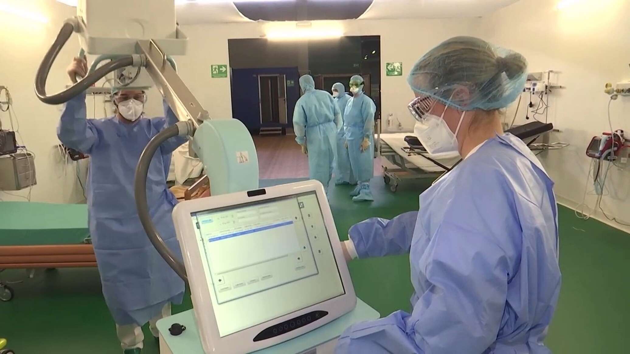 Работа российских военных врачей в полевом госпитале в Бергамо