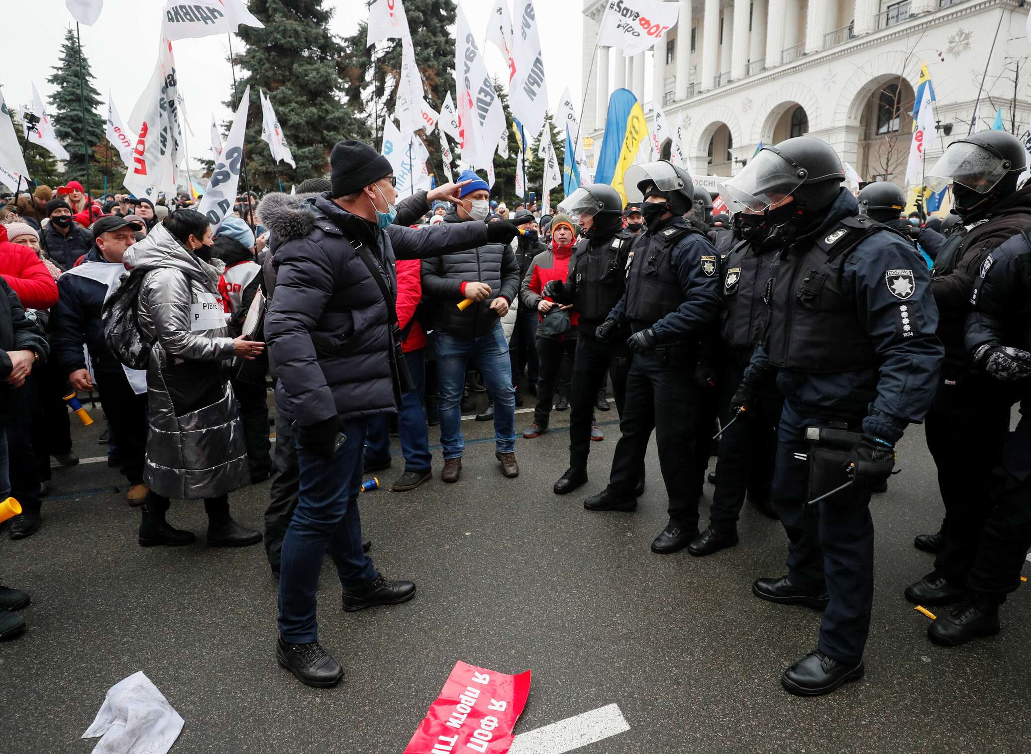 Накануне вечером (во вторник, 22 декабря) предприниматели провели «большую мобилизацию», собрав сторонников для митинга и проведения шествия. На митинге приводили данные: более 50 млрд гривен налогов уплатили ФОПы (физические лица — предприниматели. — Ред.) в прошлом году и хотят платить налоги и дальше, чтобы поддержать государство, которое губят «казнокрады». Один из выступавших заявил, что надо просить консультаций у Посольства США в Украине, просить, «чтобы они подключились».