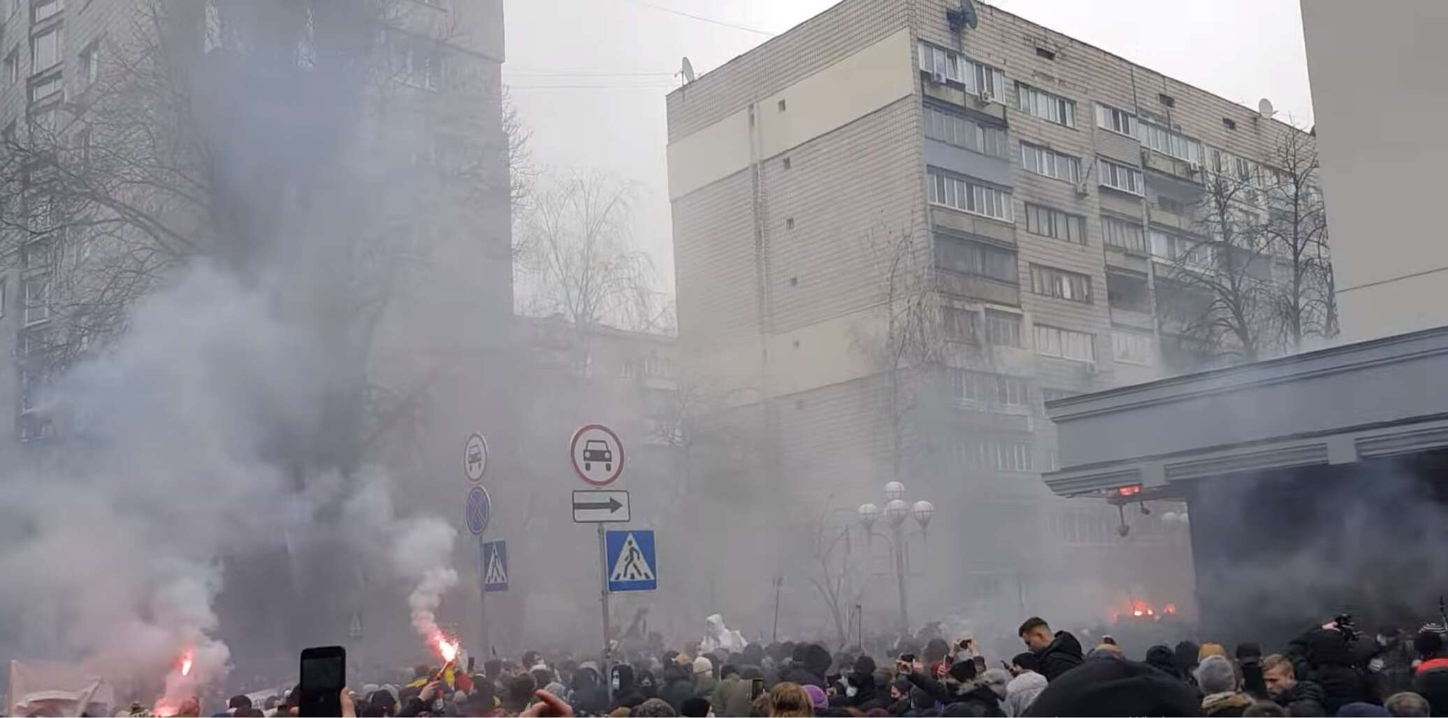Выкрикивая оскорбления в адрес генерального прокурора Ирины Венедиктовой, в частности, ее называли «чумой» и «ящерицей», радикалы забросали здание Офиса генпрокурора пиротехникой. Полиция не реагировала на действия ультраправых.