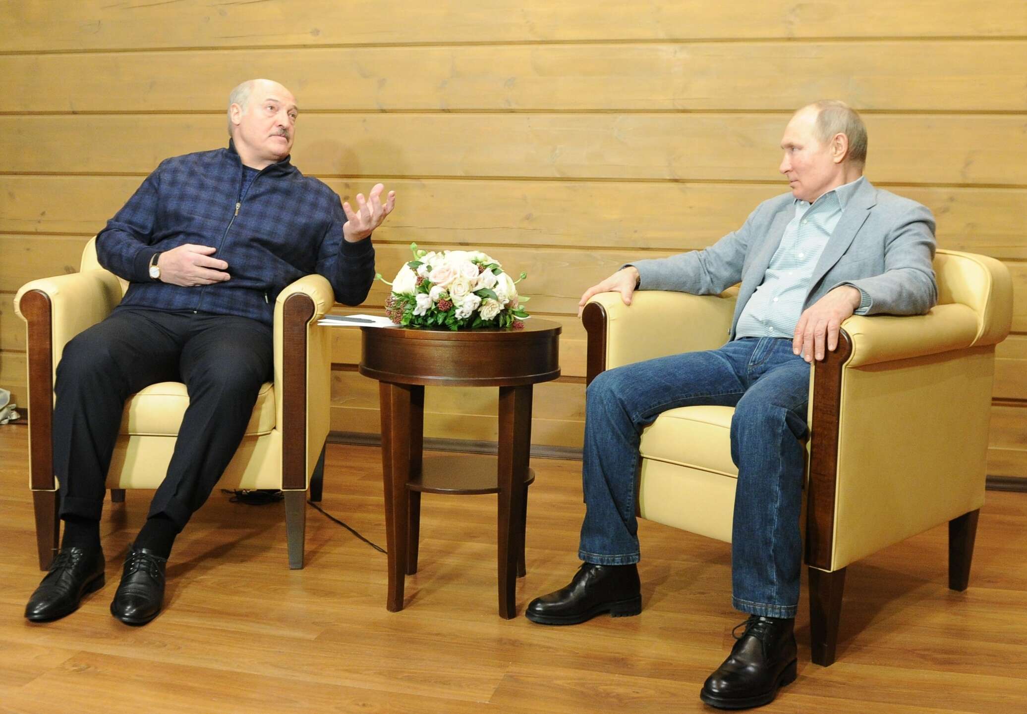 © РИА Новости . Алексей Дружинин / Перейти в фотобанкПрезидент РФ В. Путин встретился с президентом Белоруссии А. Лукашенко