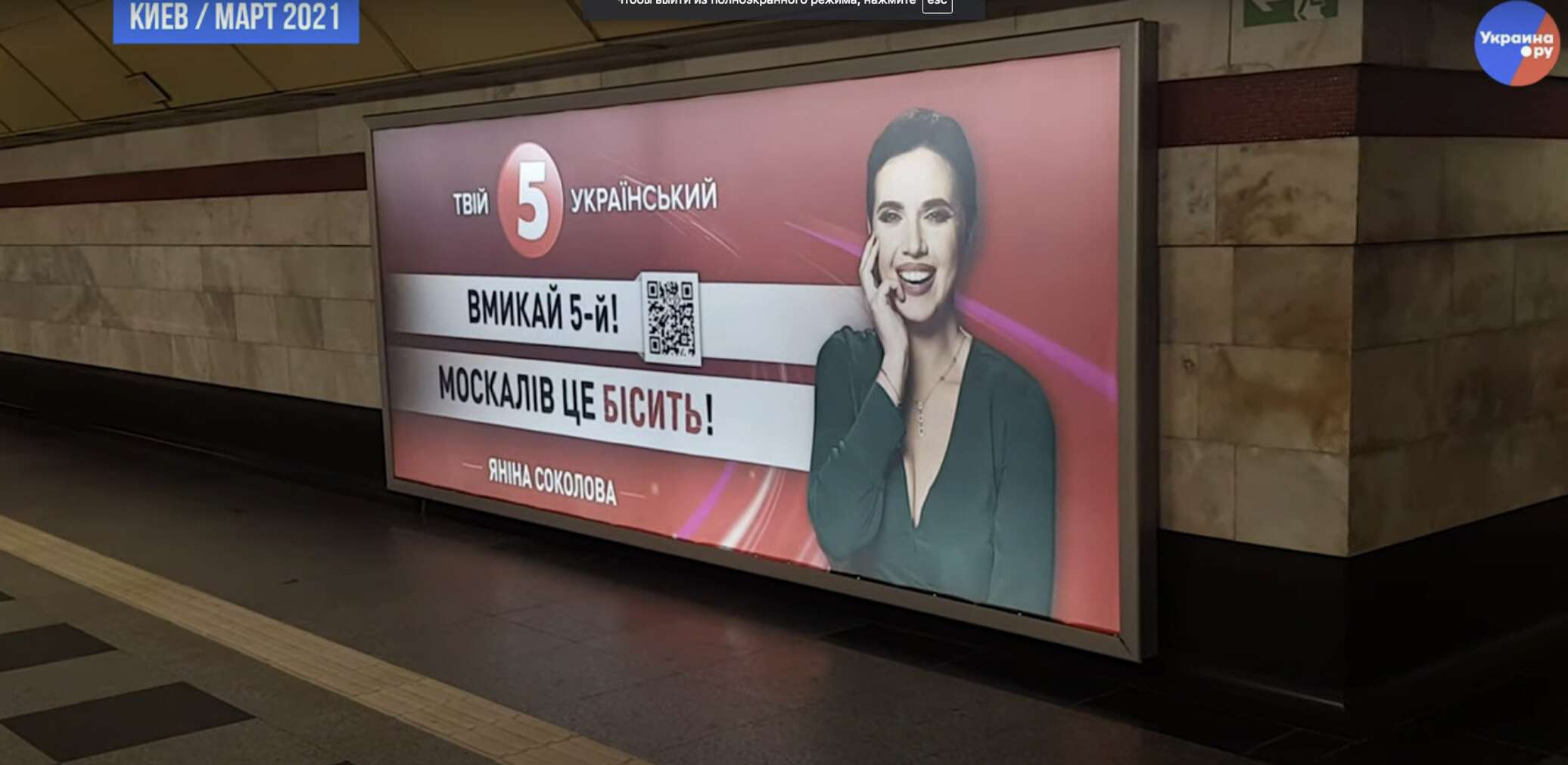 В Киеве на станции метро «Сырец» установили рекламную панель, призывающую смотреть один из телеканалов, принадлежащих экс-президенту Украины Петру Порошенко, так как это якобы «бесит москалей»
