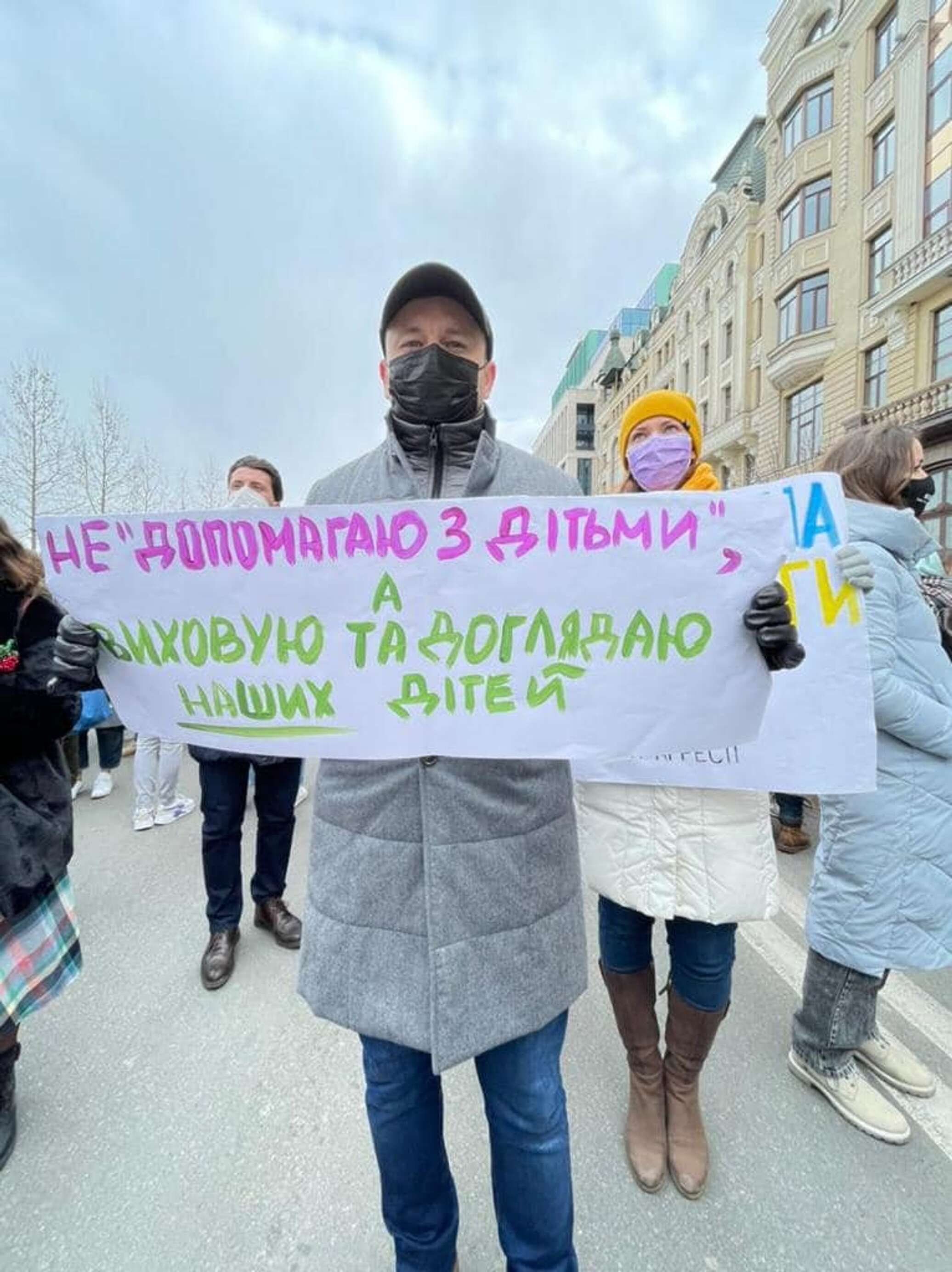 Марченко вышел на марш вместе со своей супругой Мариной — основательницей общественной организации «Клуб поддержки беременности и материнства "Лада"». Она несла плакат с надписью «Не декретный отпуск, а работа по уходу за ребенком», а он — «Не "помогаю с детьми", а воспитываю детей и ухаживаю за ними».