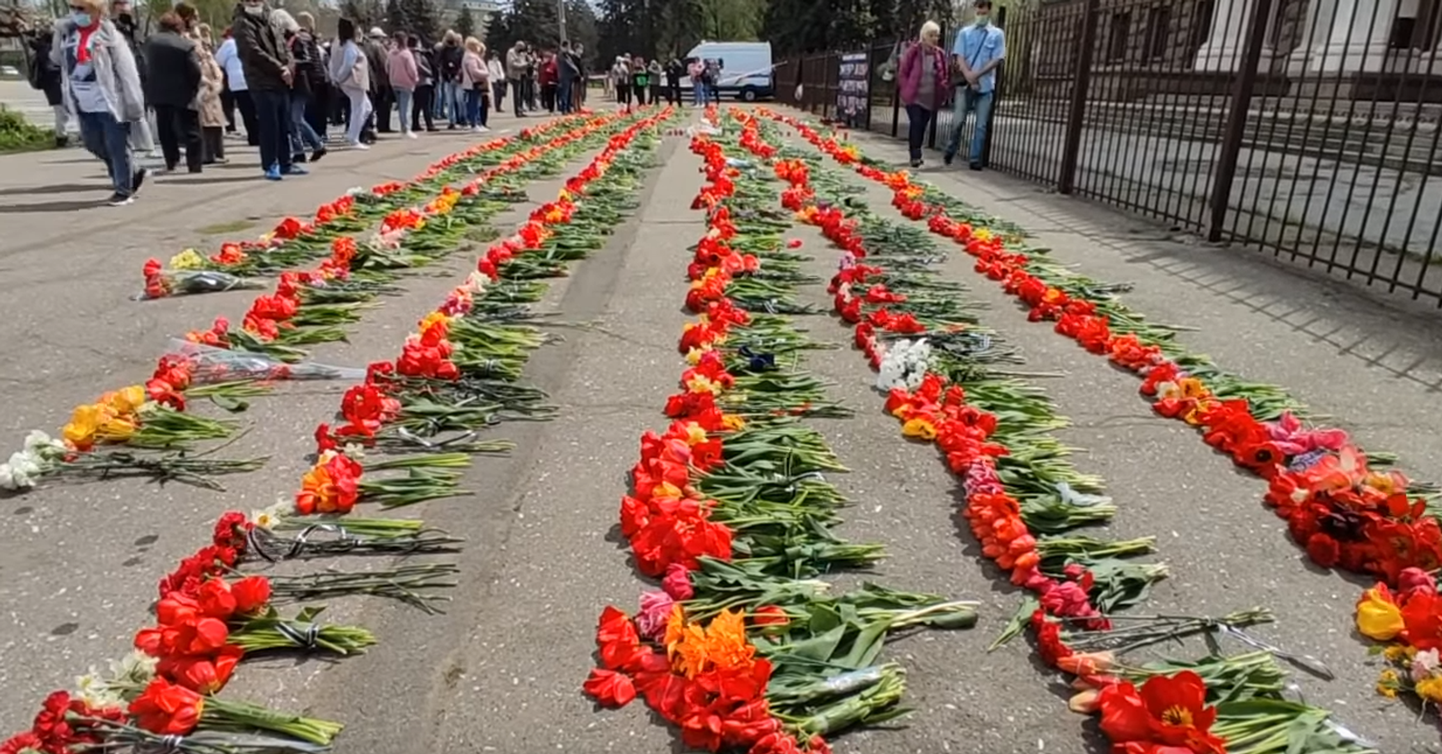 Журналист Украина.ру 2 мая 2021 года запечатлел, как одесситы буквально утопили Дом профсоюзов в цветах.