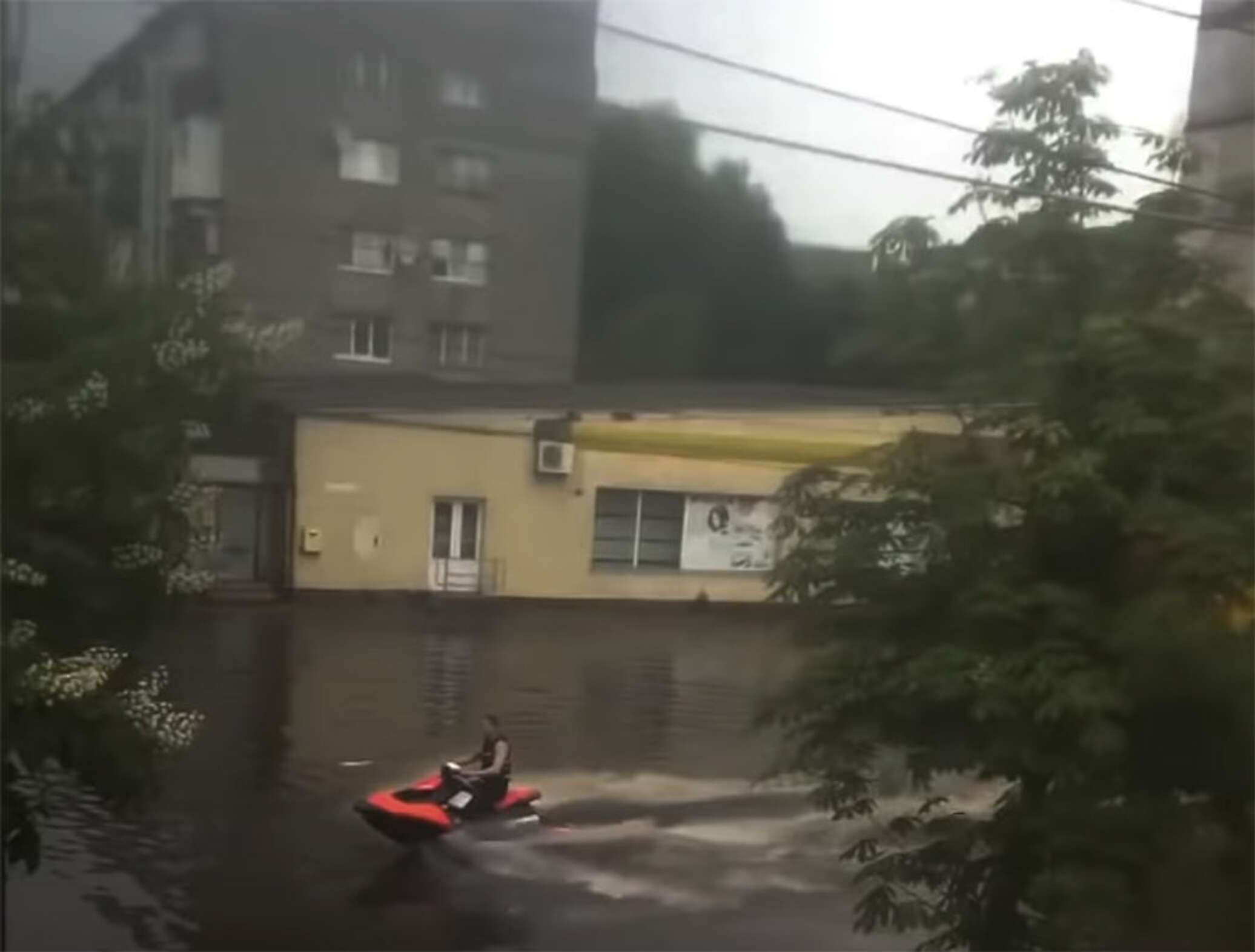 Ливень вынудил жителей Житомира пересесть с автомобилей на водные мотоциклы — видео