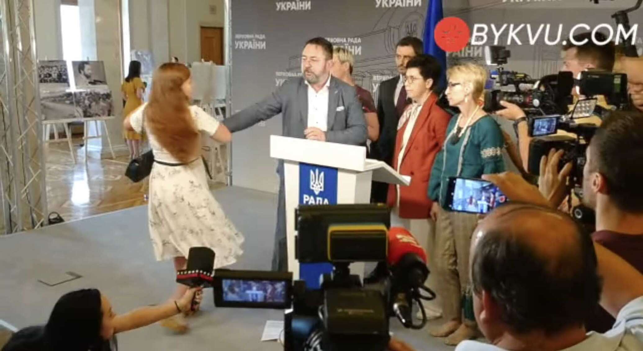 Далее она начала бить Потураева, однако ее быстро задержали представители Управления государственной охраны и вывели из здания Рады.