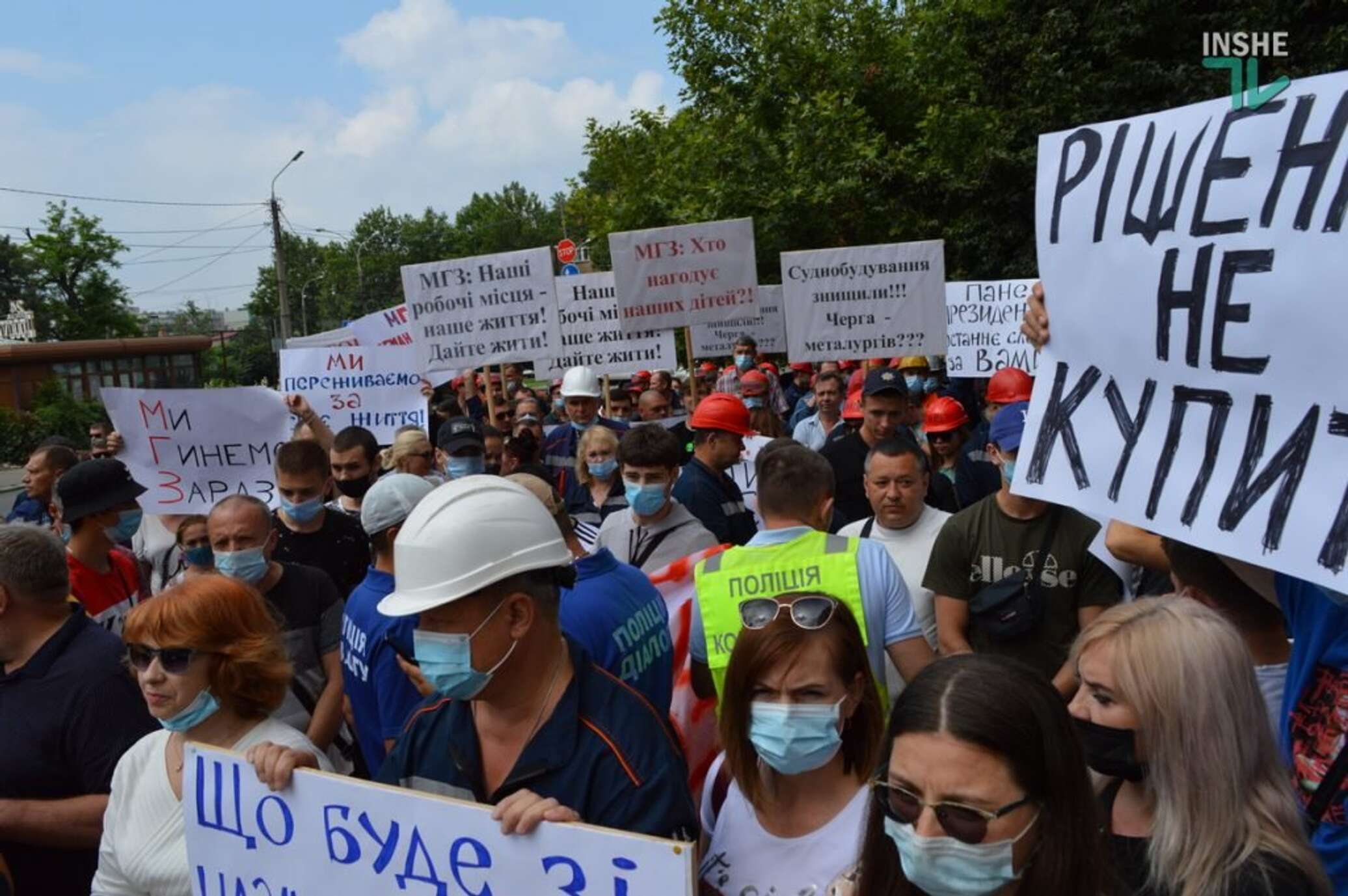 «Однако, когда прозвучал гимн Украины, на место митинга подтянулись члены ОО «Стоп шлам», которые также попытались развернуть свои плакаты с надписями: «Русский алюминий убивает Николаев!». Работников НГЗ это возмутило, и начались потасовки — стороны толкались и выкрикивали друг другу «без провокаций!», в конце концов, «стопшламовцев» просто вытолкали с первой линии митингующих», — говорится в сообщении.